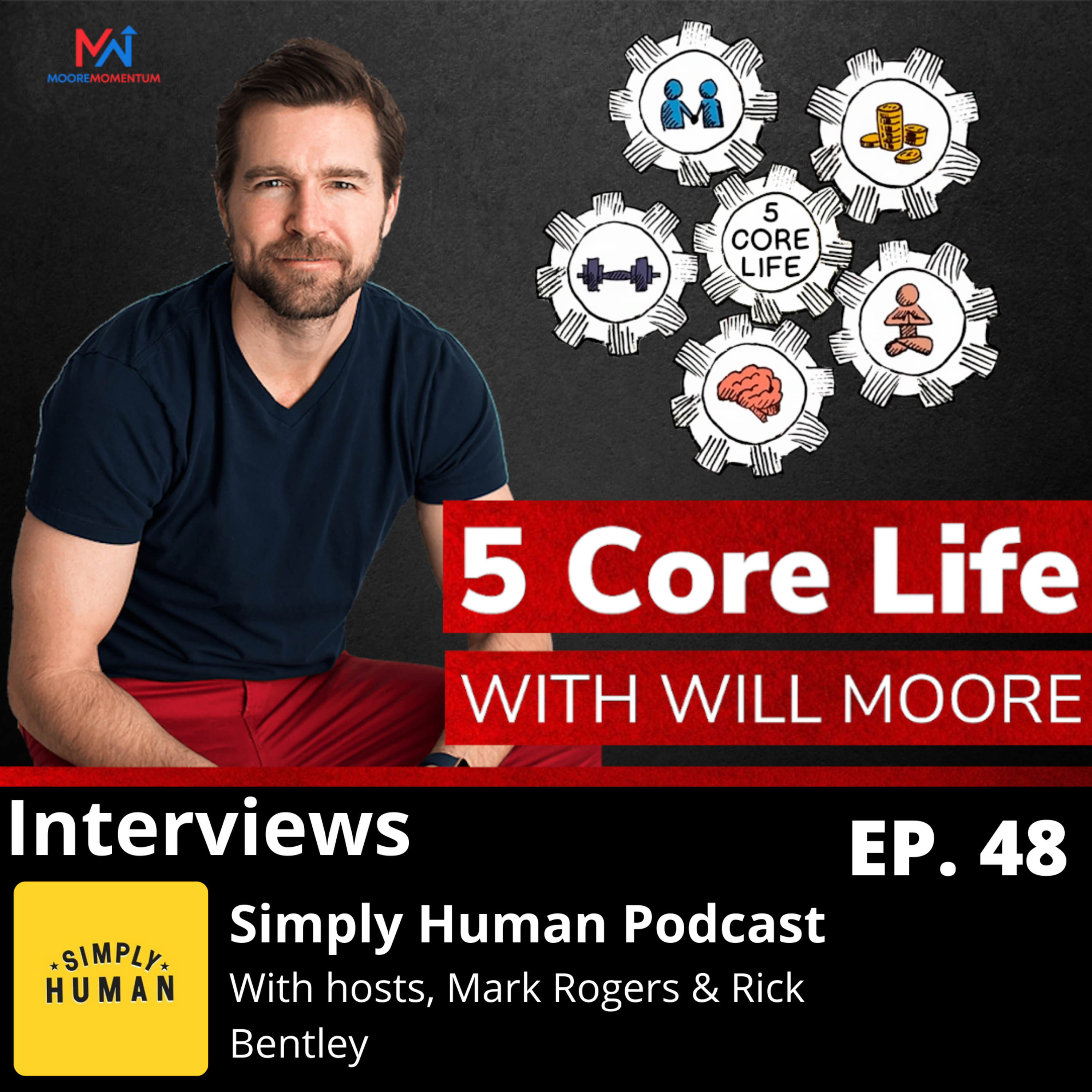 48. In this episode of the 5 Core Life, Will Moore is interviewed on The Simply Human Podcast by Mark Rogers & Rick Bentley. On their podcast, Mark and Rick help humans discover just how simple being a healthy human really is. Eat like a human. Move like a human. Sleep like a human. Enjoy life...like a human.