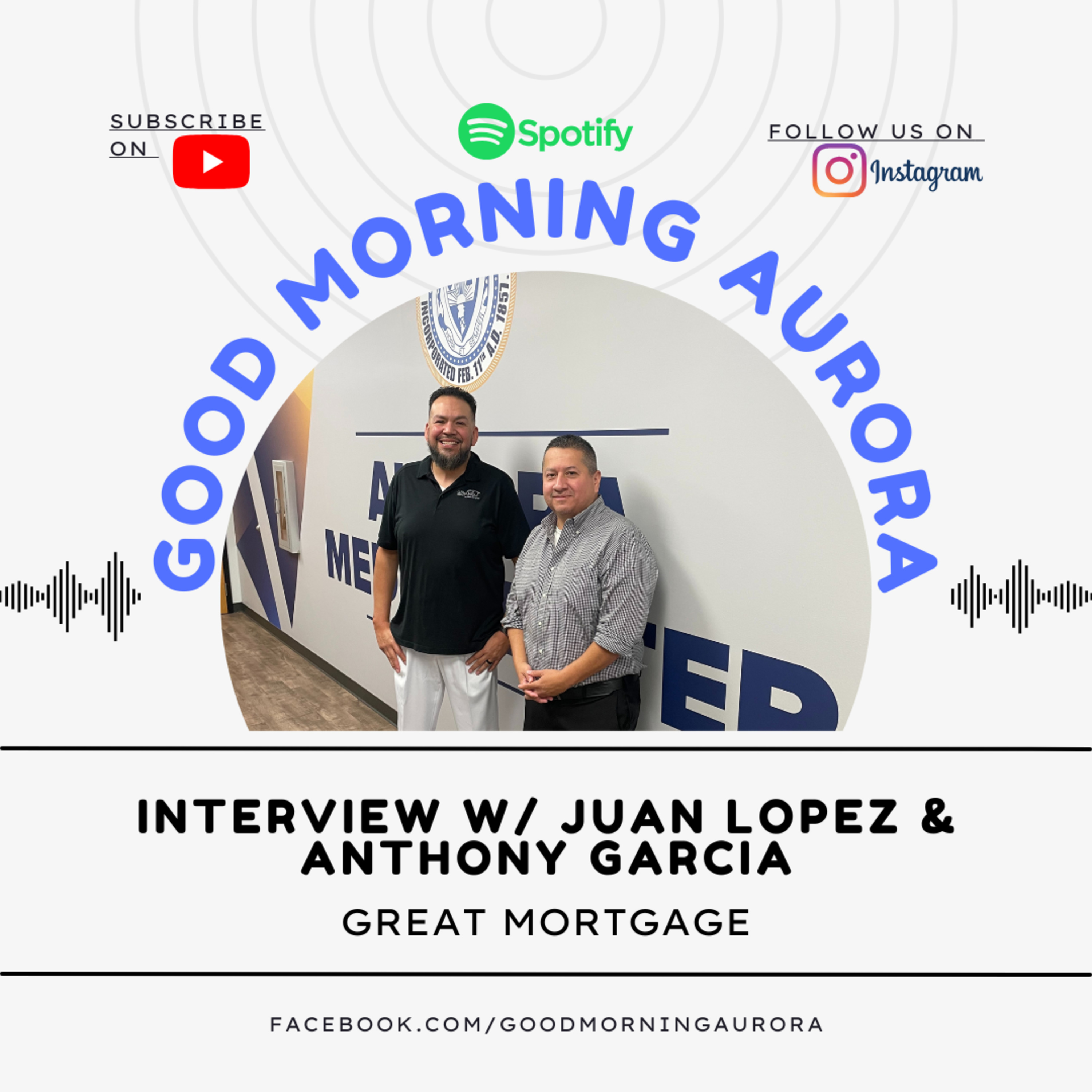 Good morning and happy Thursday! Today the experts in homebuying and finance are here to talk to the community about important information for Aurora families. Our guests today are Juan Lopez and Anthony Garcia, both mortgage brokers with Great Mortgage. They will be speaking with Aaron Rodriguez live so prepare for a great show! Got questions? Send us an email to: goodmorningaurorail@gmail.com