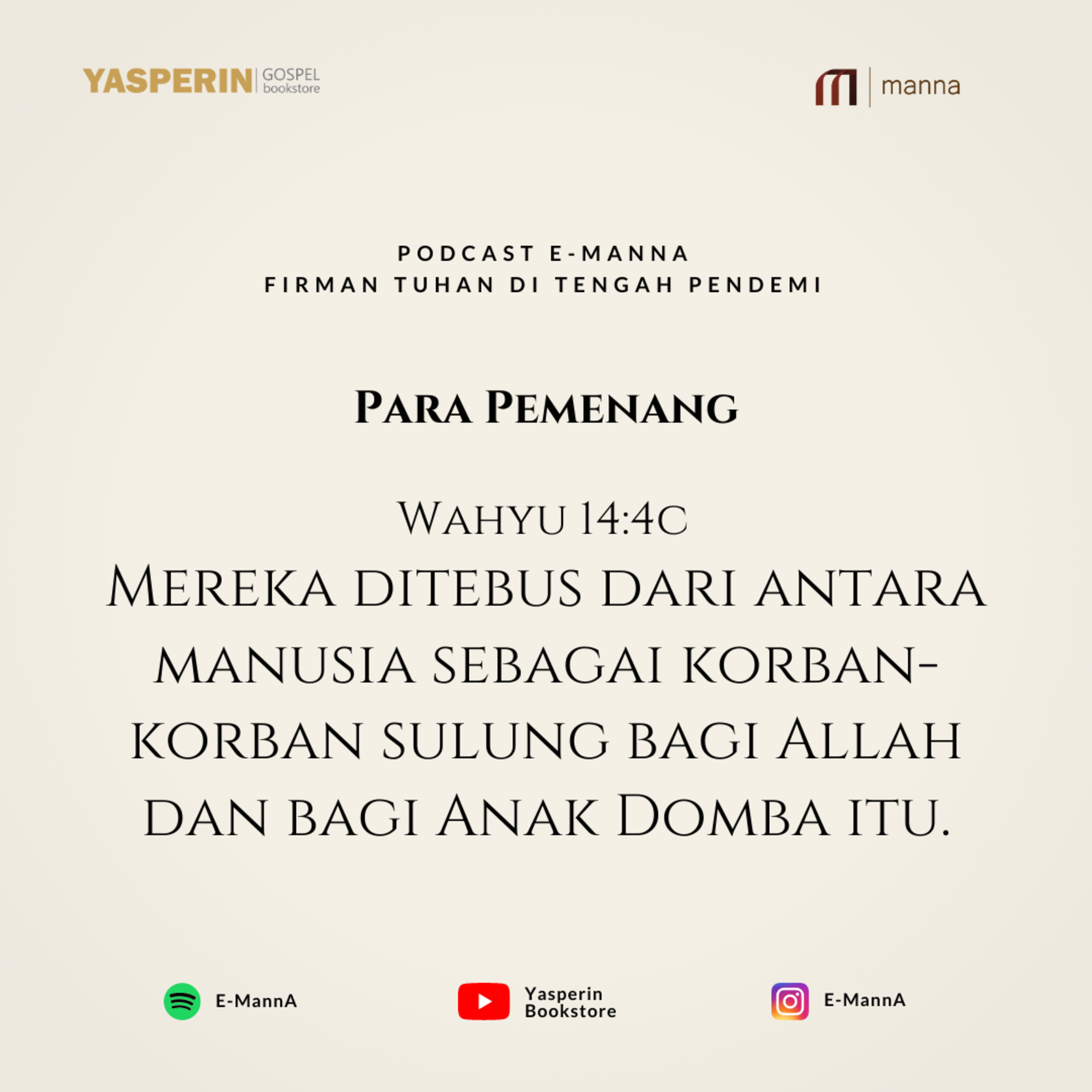 “Mereka ditebus dari antara manusia sebagai korban-korban sulung bagi Allah dan bagi Anak Domba itu."