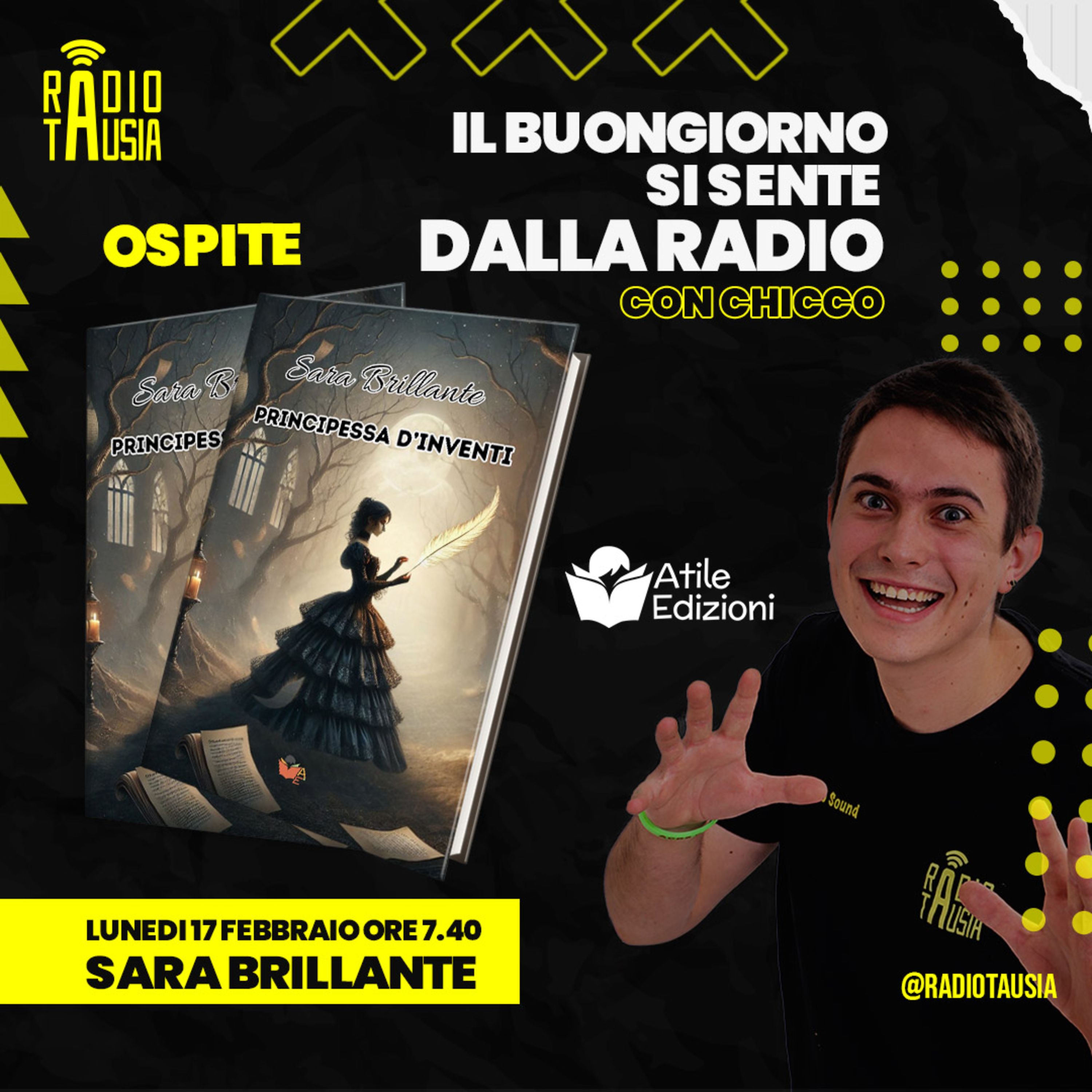 Buongiorno amici di Radio Tausia! Siamo lieti di accogliervi in un nuovo appuntamento del lunedì con la nostra rubrica dedicata agli scrittori e alle scrittrici, realizzata in collaborazione con Atile Edizioni all'interno del programmail Buongiorno si sente dalla Radio. Oggi abbiamo avuto il piacere di ospitare Sara Brillante, autrice del libro "Principessa d'inventi".