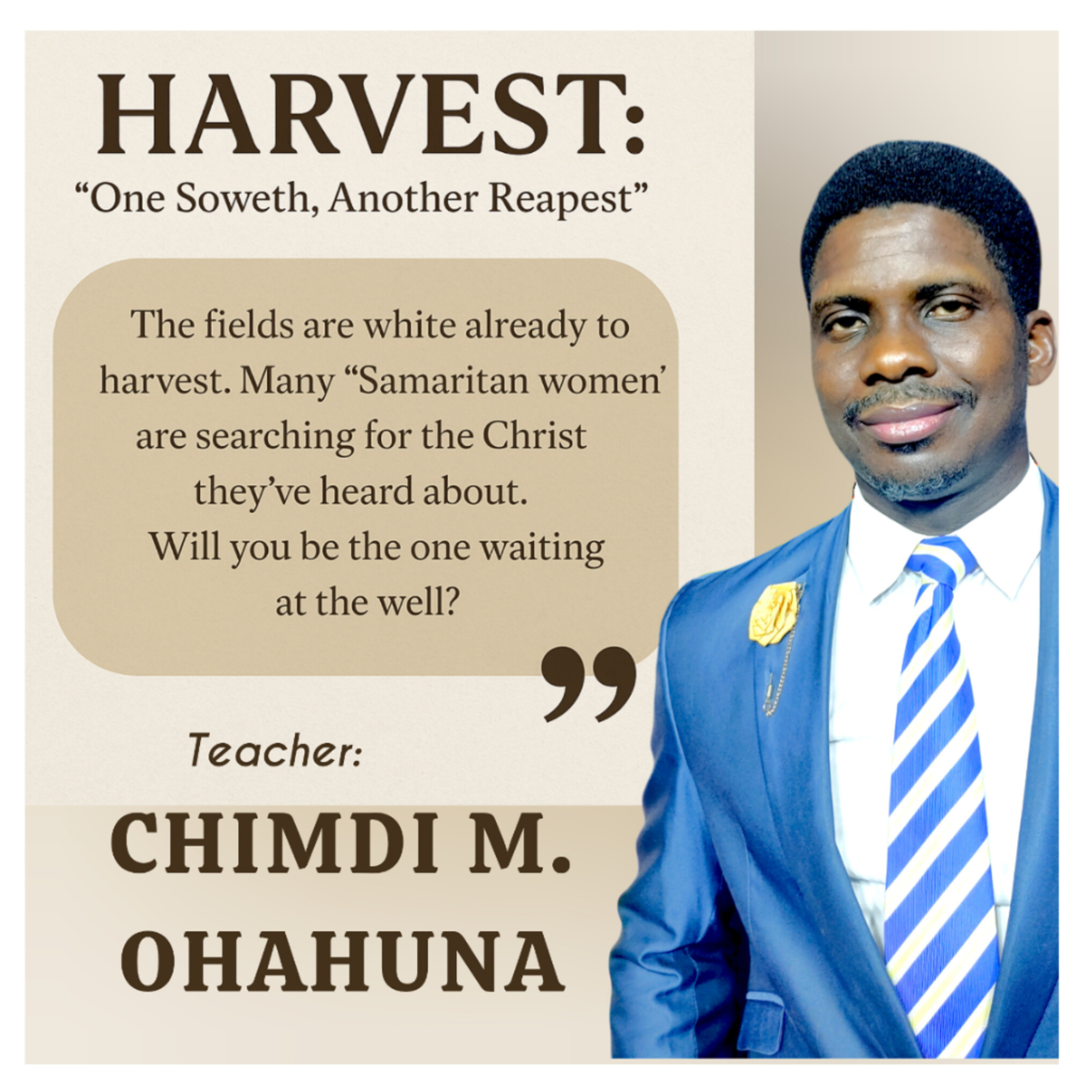 HARVEST| One Soweth, Another Reapest| John 4:37–38 | Hebrews 1:1 | Isaiah 9:6| CHIMDI OHAHUNA