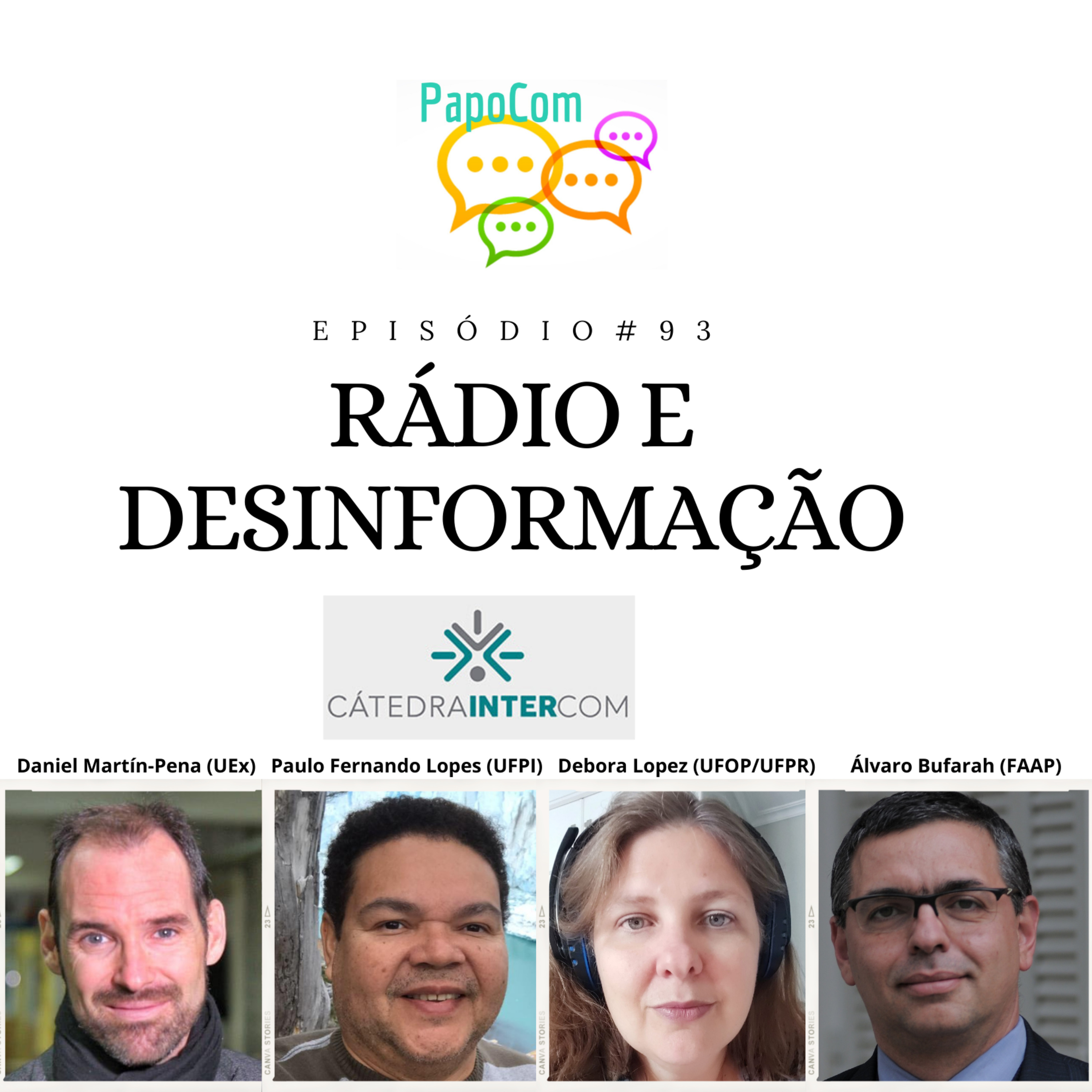O PapoCom #93 traz o 14º episódio da 4ª temporada da série Lives Cátedra Intercom, promovida pela Sociedade Brasileira de Estudos Interdisciplinares de Comunicação (Intercom), que renovou a parceria com o grupo de pesquisa PráxisJor (PPGCOM/UFC) para a realização de debates em podcasts. Neste episódio, o tema em debate é “Rádio e desinformação”. O bate-papo conta com a participação de Daniel Martín-Pena (UEx) e Paulo Fernando Lopes (UFPI). A mediação é de Debora Lopez (UFOP/UFPR) e Álvaro Bufarah (FAAP).
