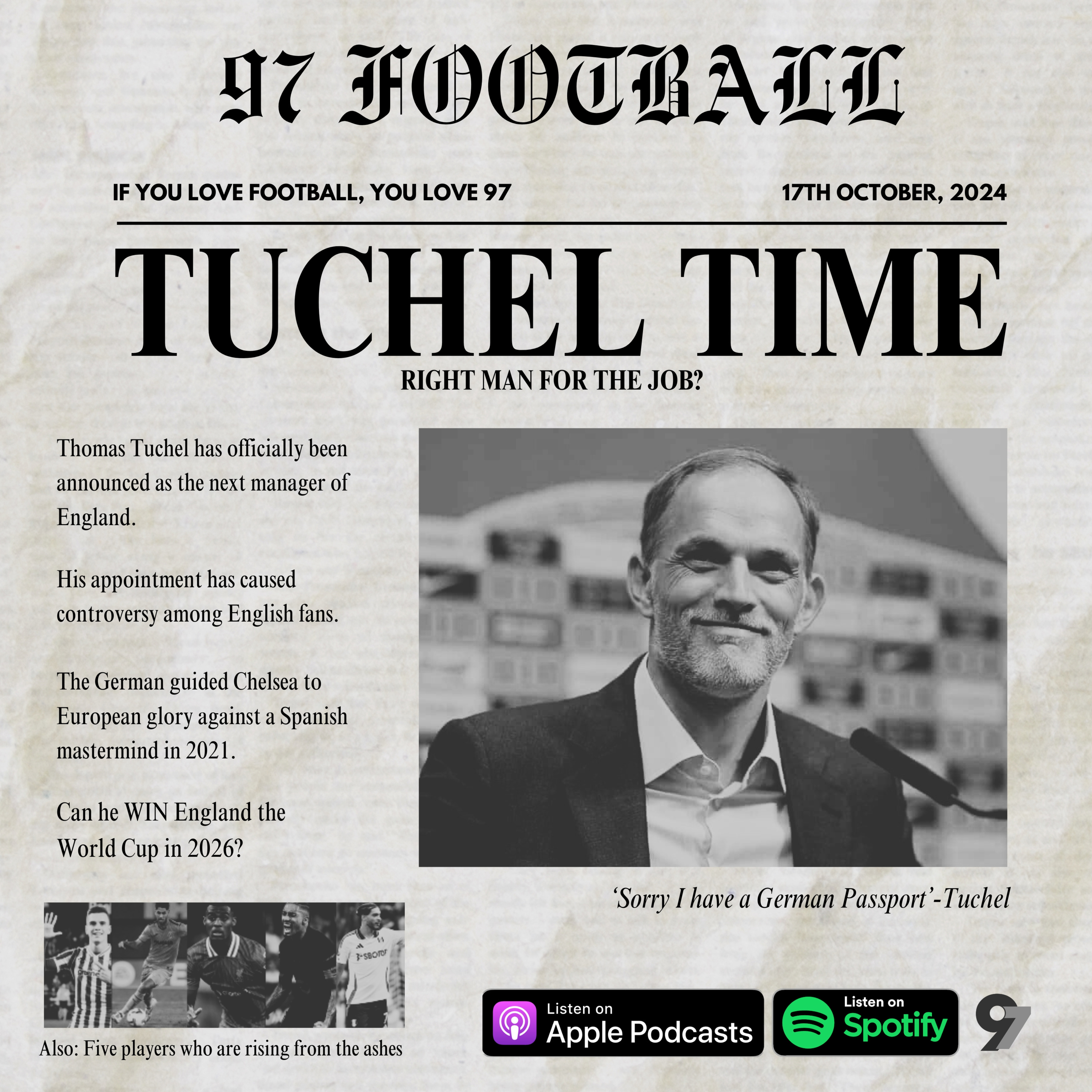 Thomas Tuchel has been announced as the next England boss and Magnus gives us a tactical breakdown of what English supporters can expect from the German manager. In other news, a few players have risen from the dead this season and Ikenna gives us his list of the most exciting ones so far. Ikenna and Magnus share an FPL pick of the week for the first time and Magnus has a new Football Manager database for the Nigerians out there. Don’t miss out on an exciting episode.