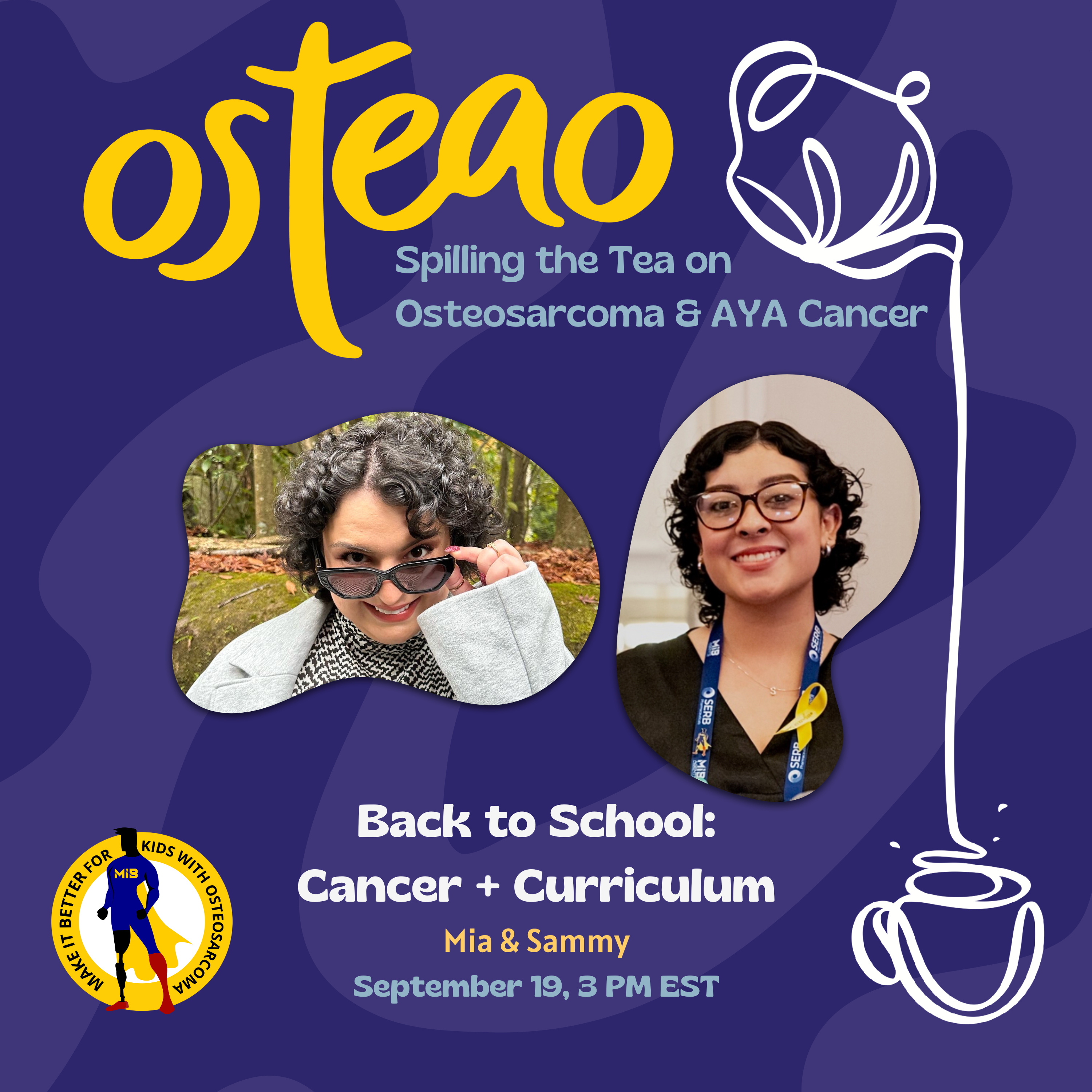 September marks Childhood Cancer Awareness Month and Back-to-School season. Mackenzie, Sloane, and Penelope join osTEAo host Sammy to discuss the challenges and feelings that can accompany going back to school. They share their personal stories about how their diagnoses interrupted their school and extracurricular activities, accessibility issues on campus, and resulting FOMO. Based on their own experiences, they share advice and tips for newly diagnosed AYA patients on managing school during and post-treatment. Listen in to hear these OsteoWarriors discuss how to be the best advocate for yourself and why FOMO is less about being at the club, and more about what comes next.