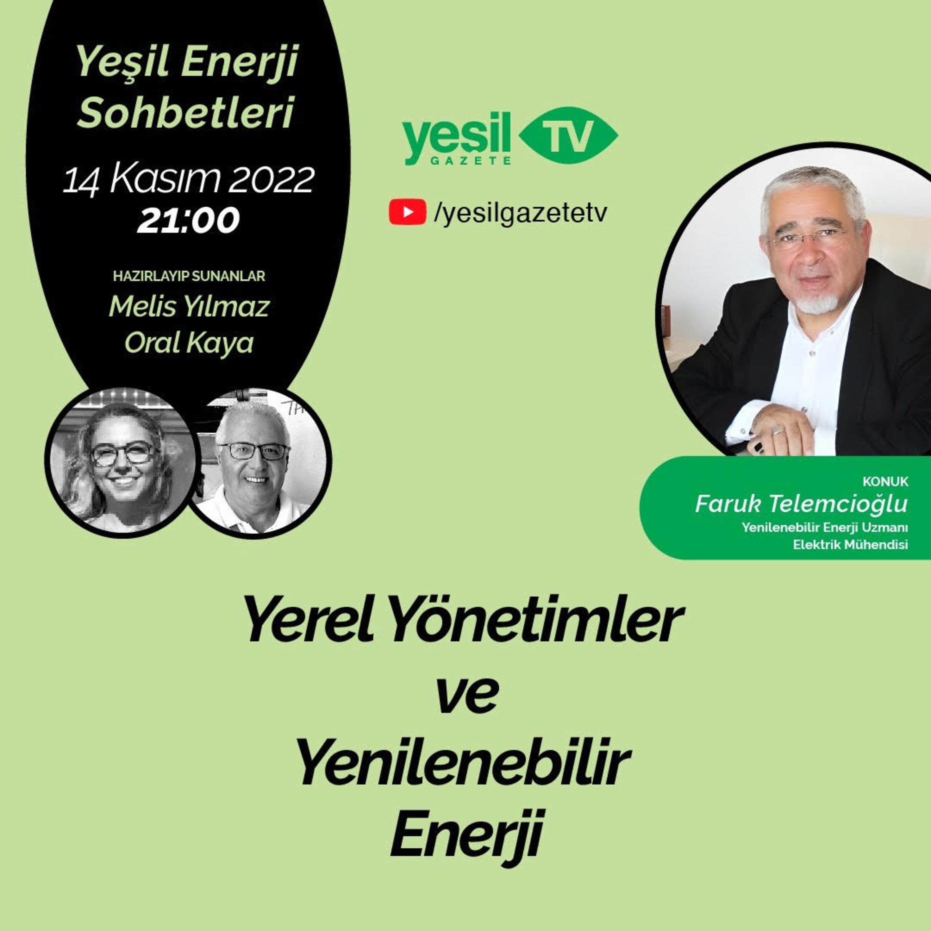Melis Yılmaz ve Oral Kaya, Yeşil Enerji Sohbetleri'nin bu bölümünde Faruk Telemcioğlu ile birlikte yerel yönetimler ve yenilenebilir enerjiyi konuşuyor.