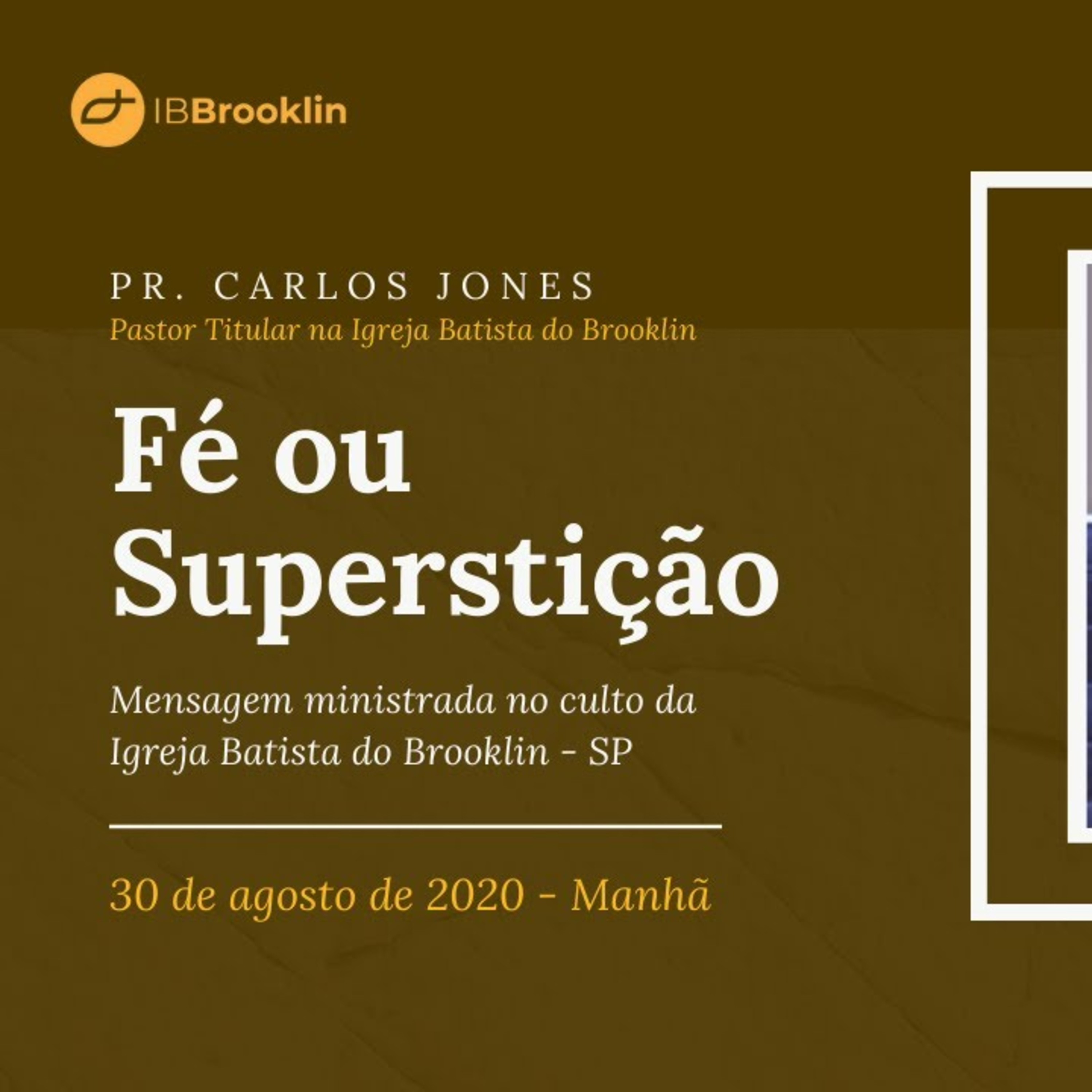 Mensagem ministrada pelo Pr. Carlos Jones no dia 30 de Agosto de 2020 e transmitida no culto online da Igreja Batista do Brooklin - SP.