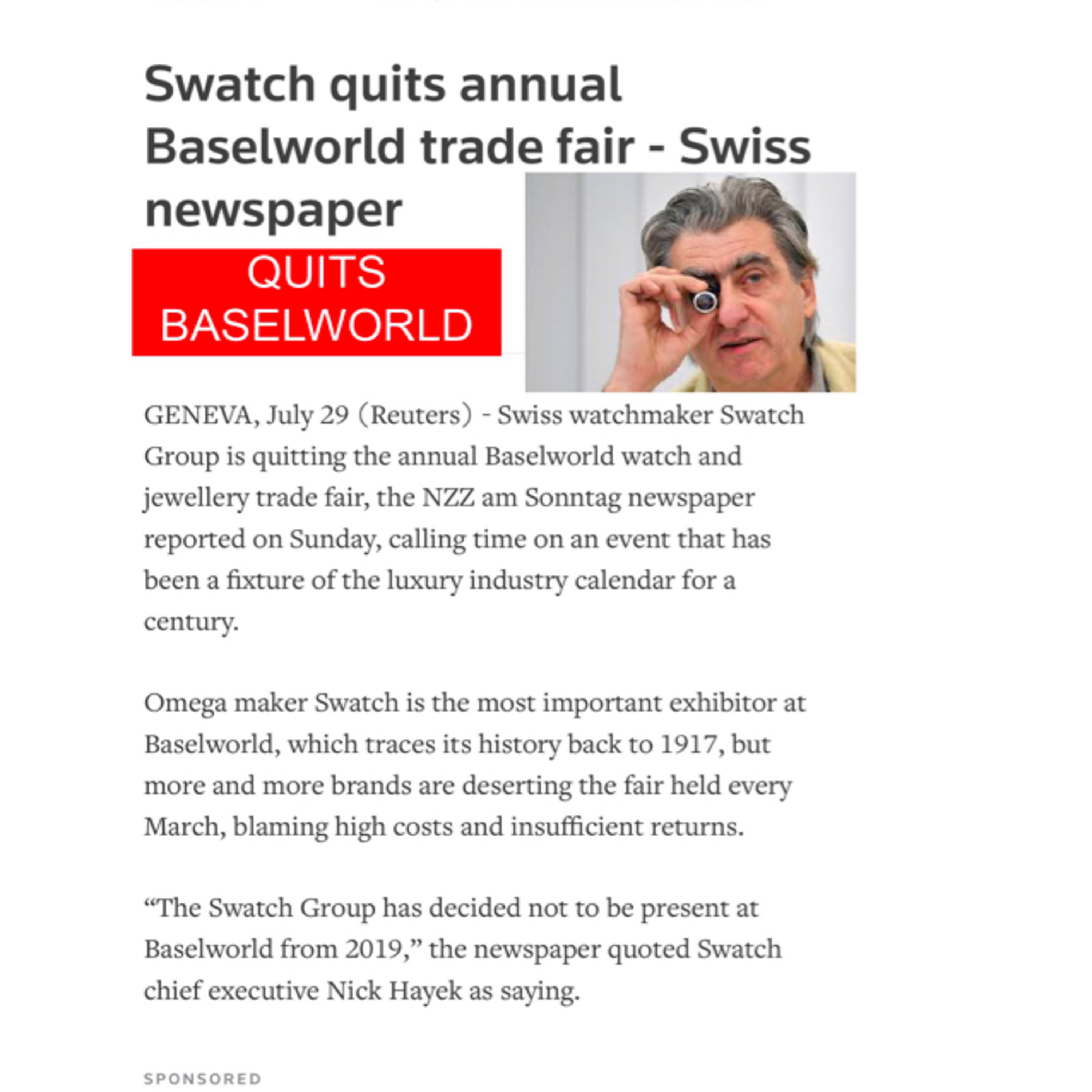 For many of you that follow me, you know that I’m often vocal about the way today’s watch industry markets its products. Well, just about an hour ago, swatch group announced that they will not be participating in Baselworld next year. This means that a good section of the fair will now be empty (unless someone fills it up). CEO Nick Hayek even said that in today’s environment of fast pace and transparency, they don’t see it useful. It’s only a matter of time before some of the industry giants really dive deep into social media and embraces the new form of marketing and brand awareness. Baselworld is overpriced anyway. ❗️What’re your thoughts on this?!