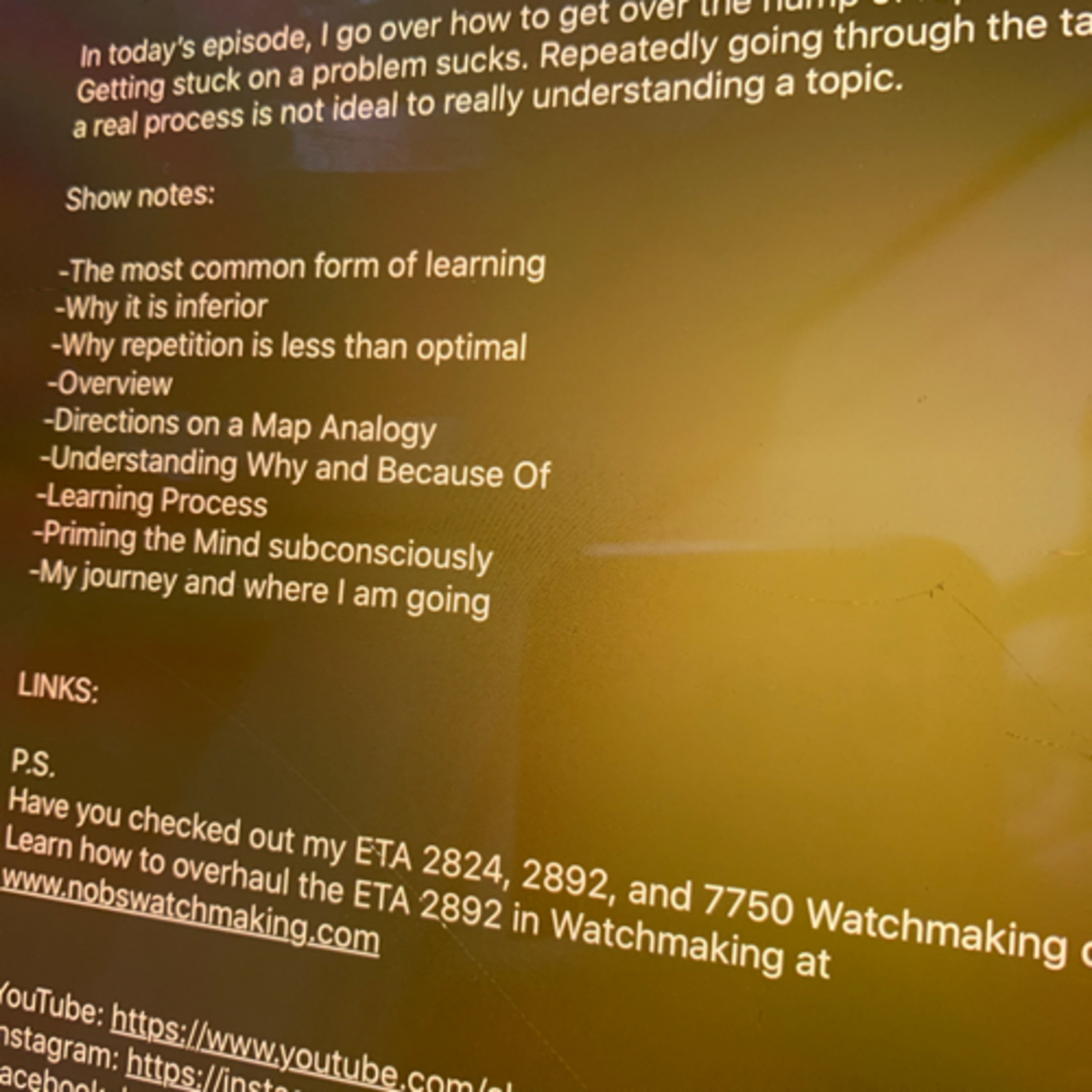 In today’s episode, I go over how to get over the hump of repetitive action. Getting stuck on a problem sucks. Repeatedly going through the task without a real process is not ideal to really understanding a topic.