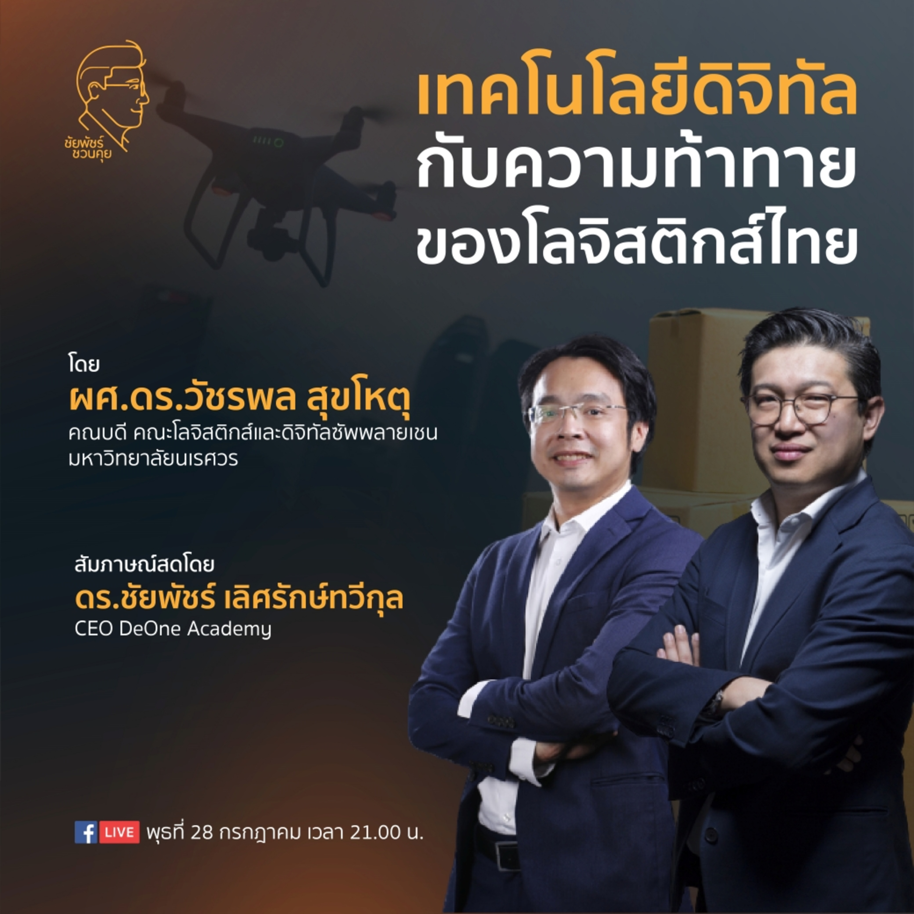อะไรคือสุดยอดเทคโนโลยีที่พลิกโฉมวงการ Logistics ในประเทศไทย เราพร้อมแค่ไหนที่จะนำเอารถยนต์ไร้คนขับเข้ามาใช้ในงานโลจิสติกส์ทั้งหมด IoT เปลี่ยนให้คลังสินค้าธรรมดา กลายเป็นคลังสินค้าอัจฉริยะได้อย่างไร และอีกสารพัดคำถามที่เปิดโลก Logistics ในยุคนี้ พบกับ ดร.วัชรพล สุขโหตุ คณบดี คณะโลจิสติกส์และดิจิทัลซัพพลายเชนมหาวิทยาลัยนเรศวร ในหัวข้อ เทคโนโลยีดิจิทัลกับความท้าทายของโลจิสติกส์ไทย #ชัยพัชร์ชวนคุย #แชร์วิธีคิด #พลิกวิธีการ #ผ่านวิธีกู #deoneacademy