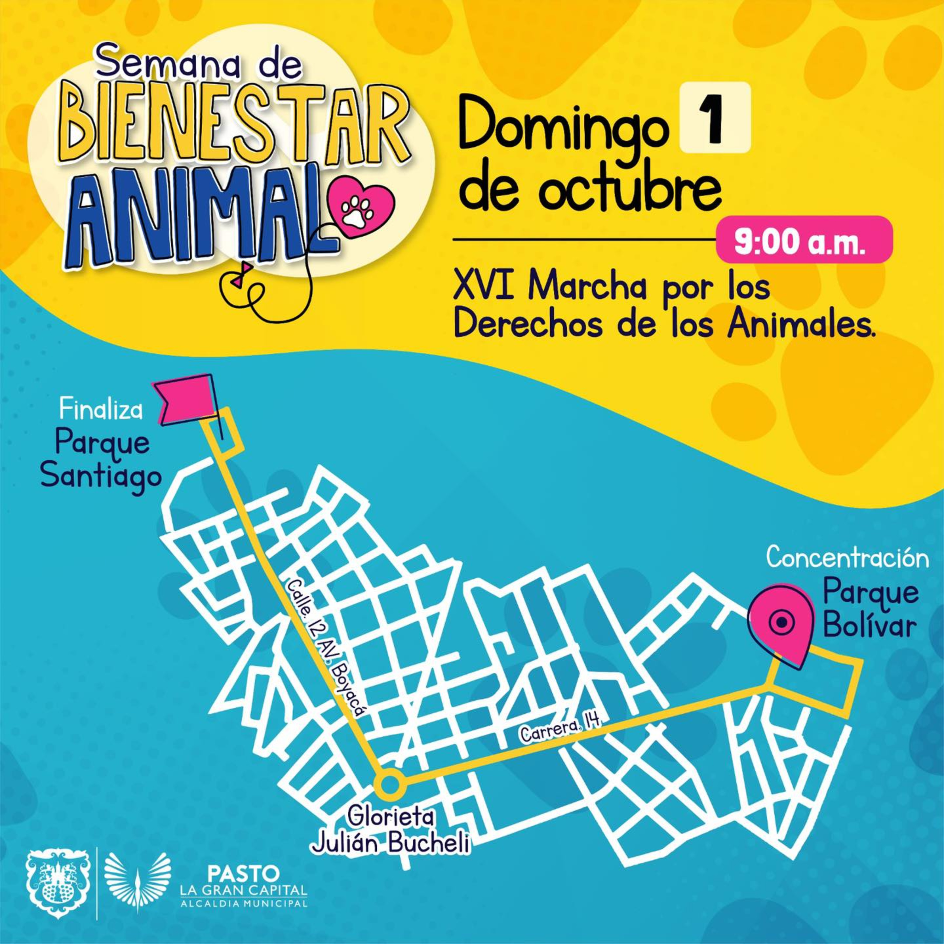 En Pasto Colombia en la primera semana de octubre se realiza diversas actividades enfocadas en el bienestar animal, acciones como Marcha, bendición de mascotas, foro, jornada de siembra, resultados del Censo, jornadas de sensibilización, entre otros.