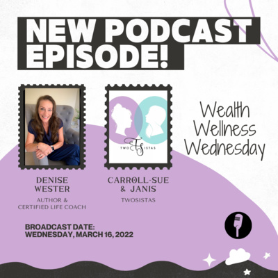 TwoSistas and it's WealthWellnessWednesday and we were excited to have on our podcast today, Denise Wester. Denise is a Certified Life Coach and Author of the book: Busting Through: Methods to get courageous, take action get unstuck and find your personal power!