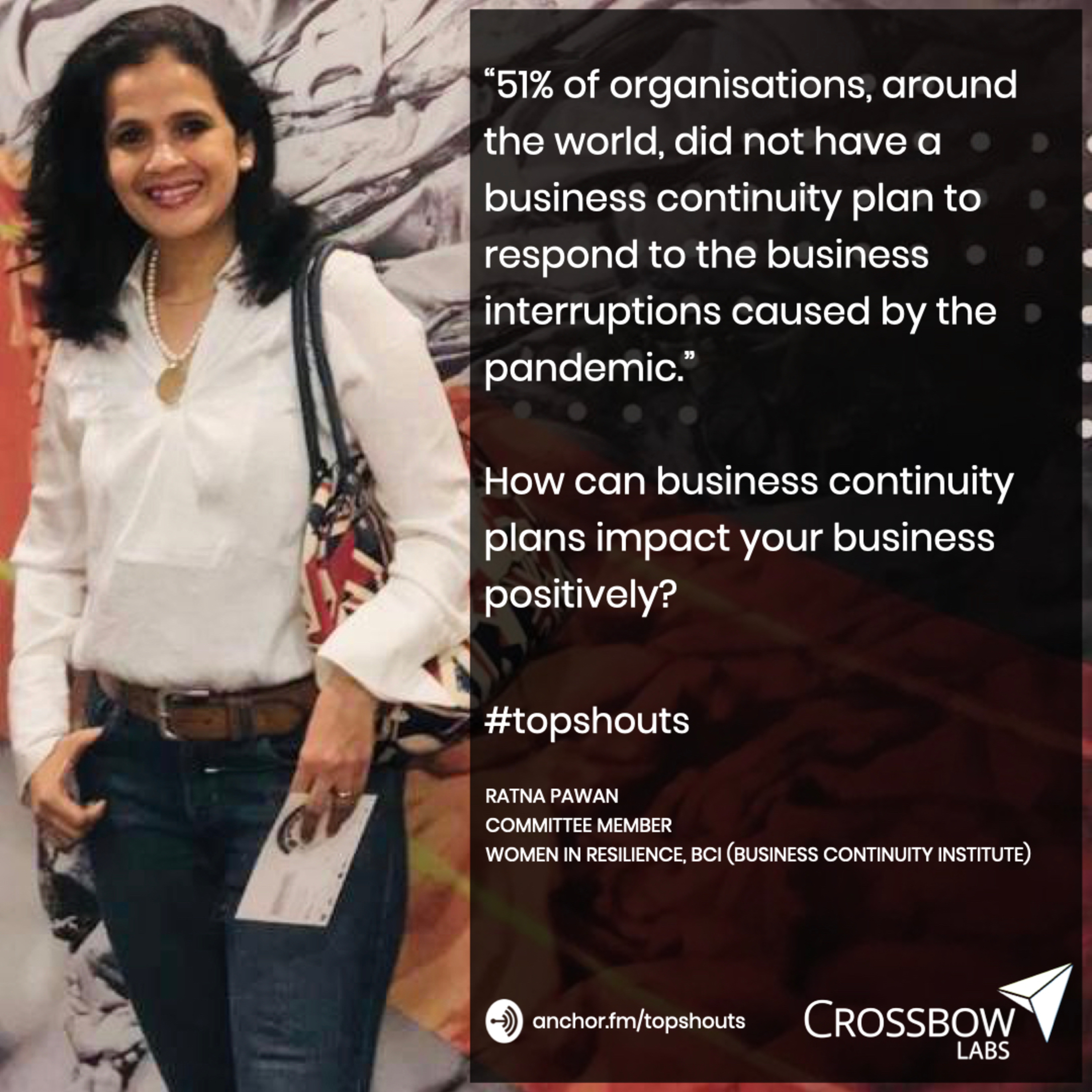 Ratna Pawan consults organizations on business resilience, enterprise & security risks. With more than 25 years of experience, Ratna has worked with the BFSI giants such as HSBC, Yes Bank, ABN AMRO, Standard Chartered, and so on. She is also a committee member of 'Women in Resilience' at BCI. In this episode, we will be looking back to how business continuity plans fared through the pandemic and what lessons are we picking upon, therefore.