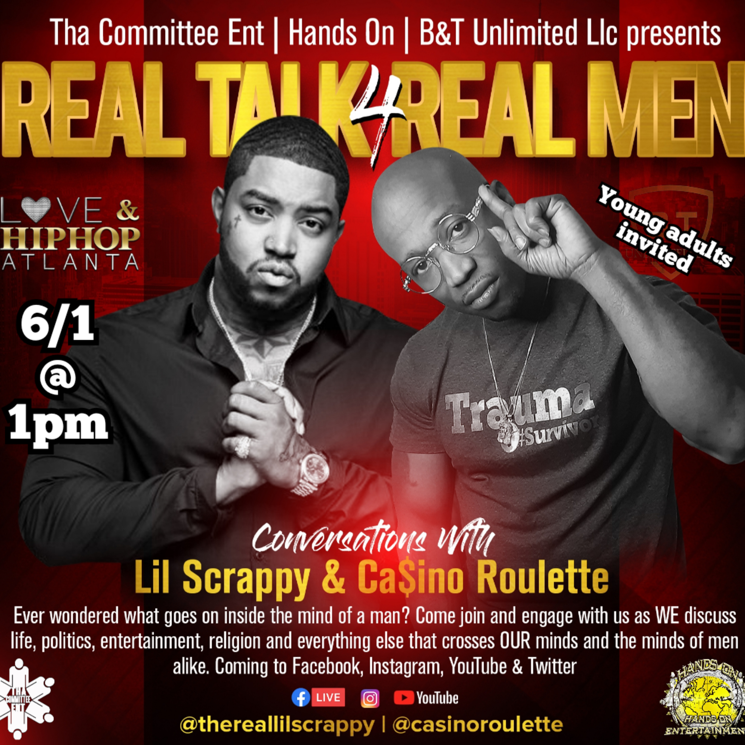 Lil Scrappy & Ca$ino Roulette sit down and have "Real Talk 4 Real Man" live about what's happening in the mind of a man living in today's time as well as the recent death of George Floyd and also revisit their near fatal car accident and how life has changed for the better for the both of them since then.