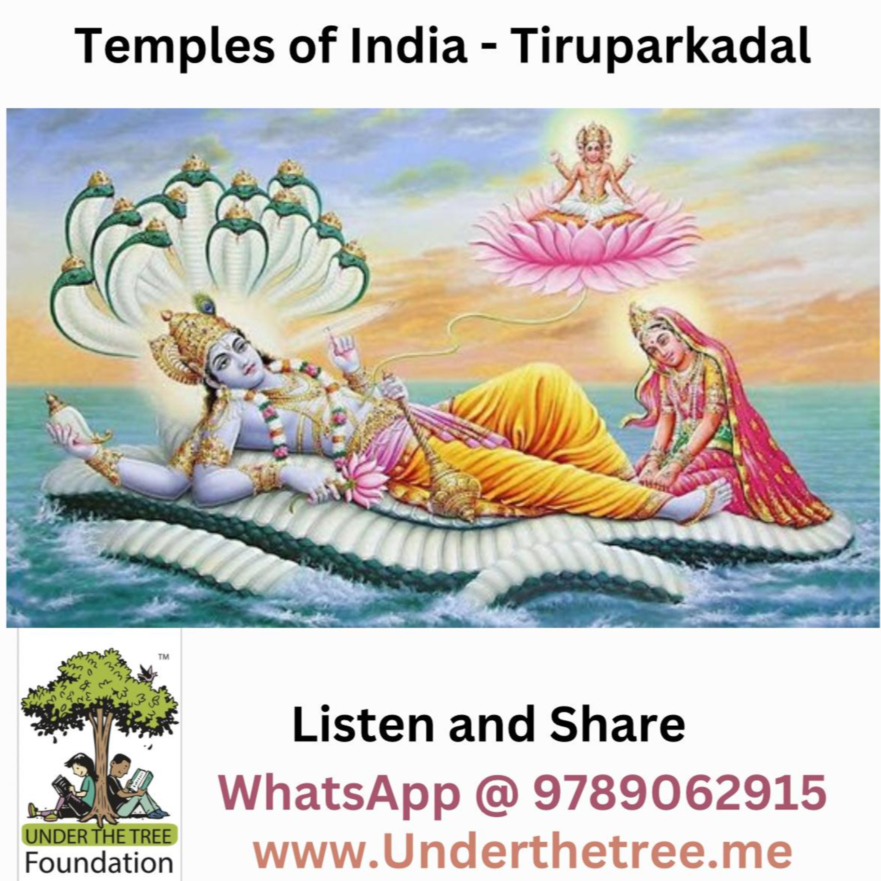 Thiruparkadal Temple is a mythological site in Hindu cosmology. The name "Thiruparkadal" translates to the "Ocean of Milk" and is associated with the cosmic ocean where Lord Vishnu is believed to reside on the serpent Ananta (also called Adishesha).