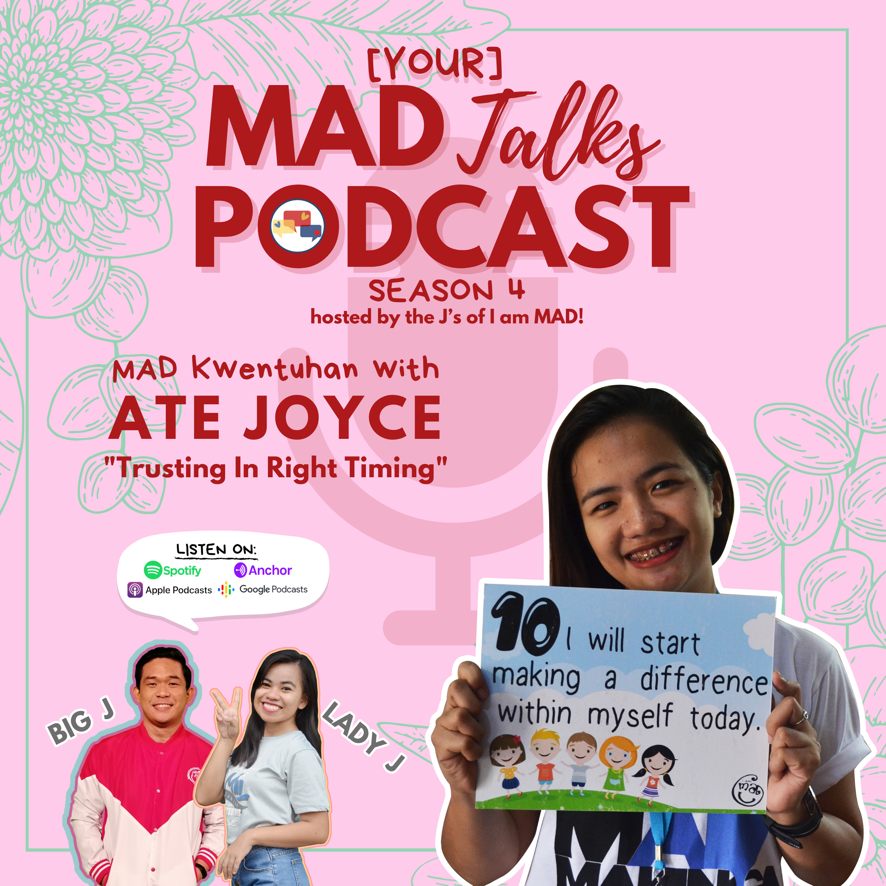 MAD Knb? Do you trust the timing of your life? At times, we feel so frustrated when things don't go our way. Our duo hosts, Big Jay and Lady J, get a lot of wisdom from this episode as our guest, Ate Joyce, shares how we can trust things to happen in the right time and place. If there are things that didn't happen, maybe it's a redirection to something greater. When we surrender ourselves to God's right timing, we will eventually learn that time can be a friend and not an enemy.