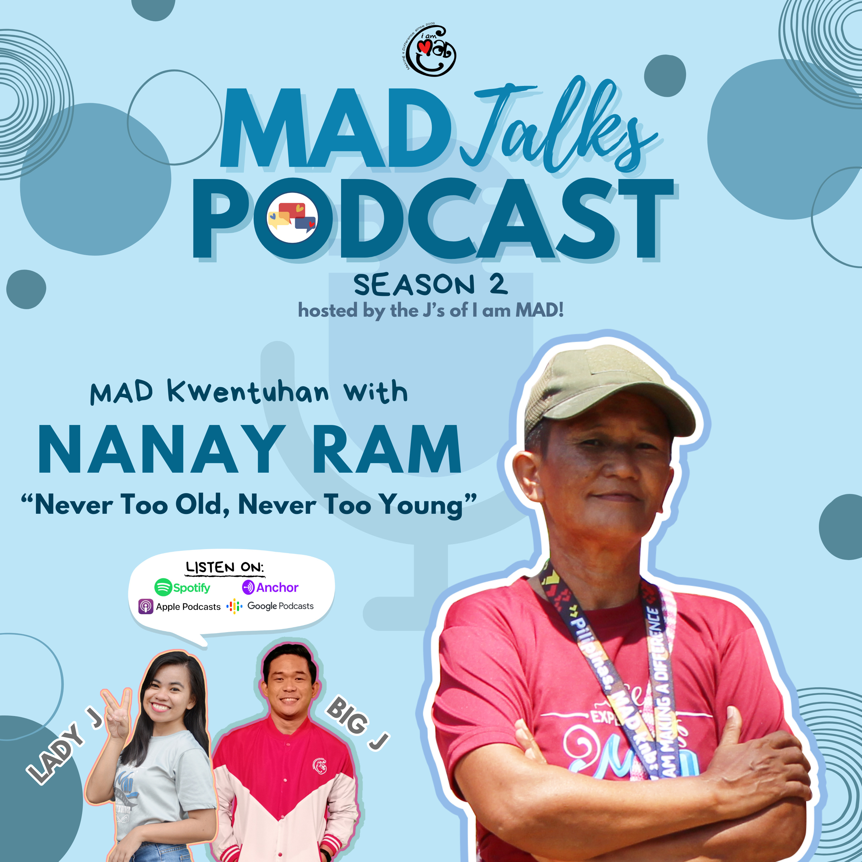 Kicking off MAD Talks Podcast Season 2 with a bang, Big J and Lady J are joined by Nanay Ramona, the most mature and senior volunteer we've had in I am MAD.