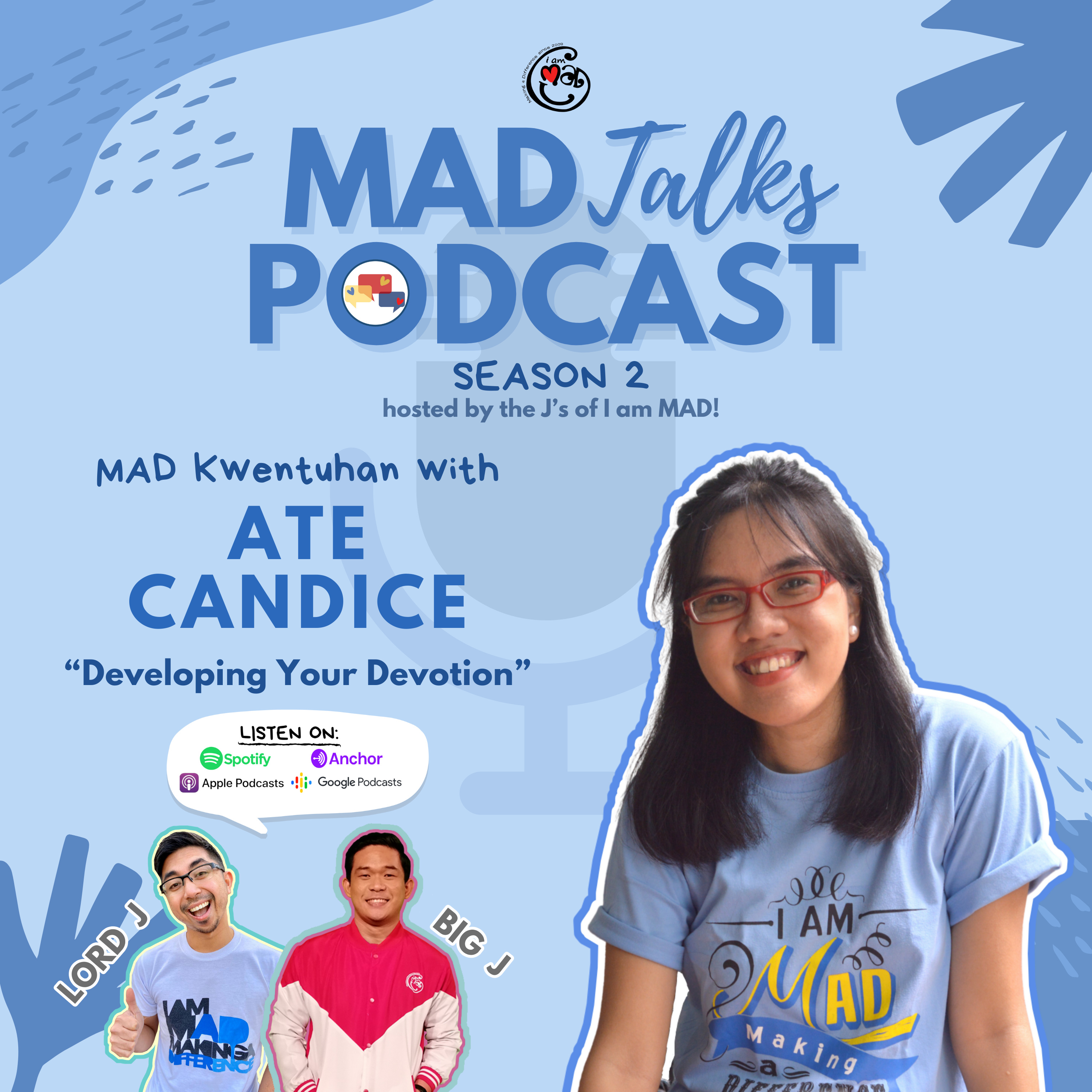 I second DEVOTION! You will surely keep on repeating this phrase after listening to this episode. Our hosts Big J and Lord J engaged in yet another lively and fruitful discussion with with Ate Candice, our resident Psychometrician cum photographer cum visual artist cum MAD Camp team leader.