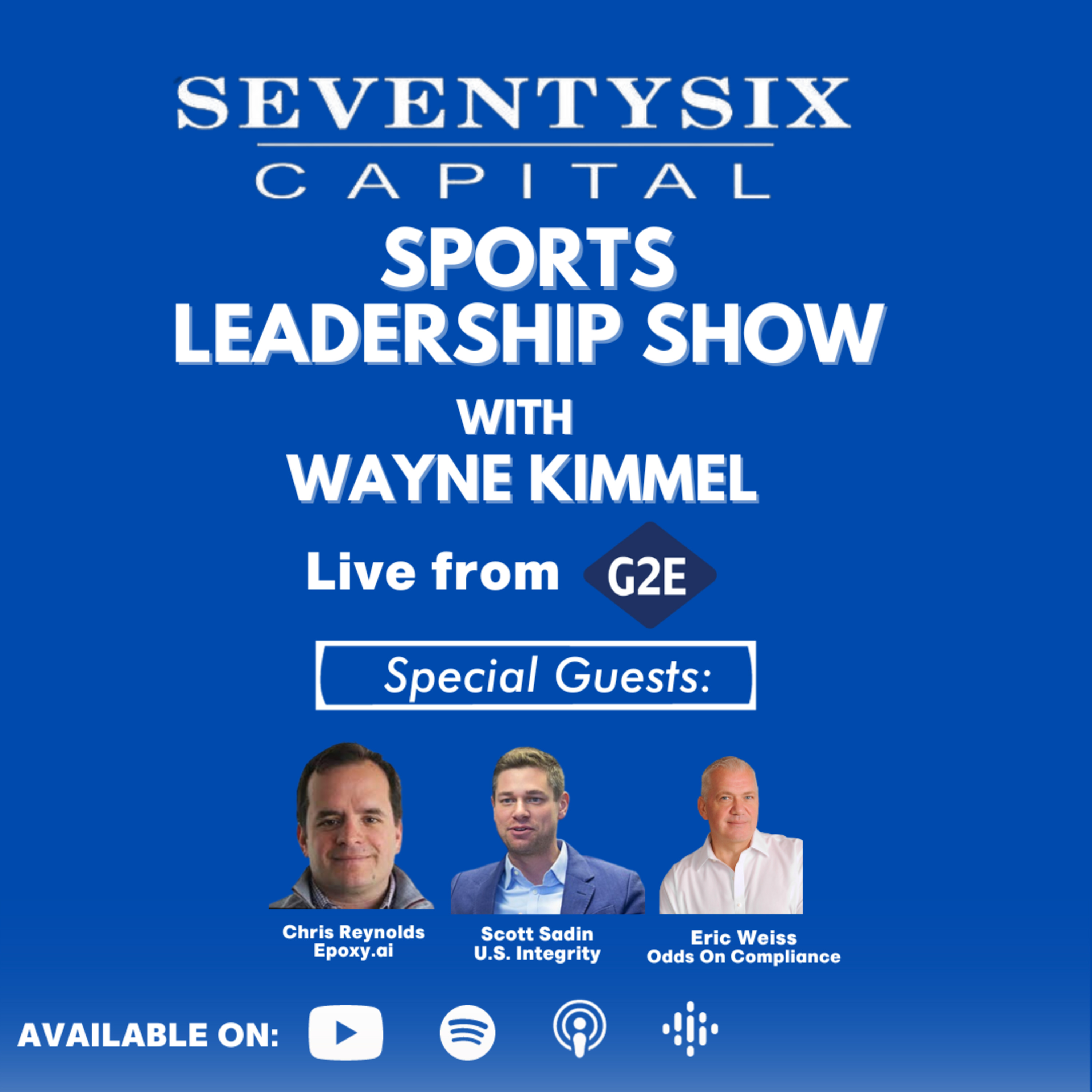 This episode of the SeventySix Capital Sports Leadership Show was taped LIVE at The Lab at G2E in Las Vegas, Nevada. Wayne Kimmel interviewed Chris Reynolds, CEO of Epoxy.ai, Scott Sadin, COO of U.S. Integrity and Eric Weiss, President, North America of Odds On Compliance.