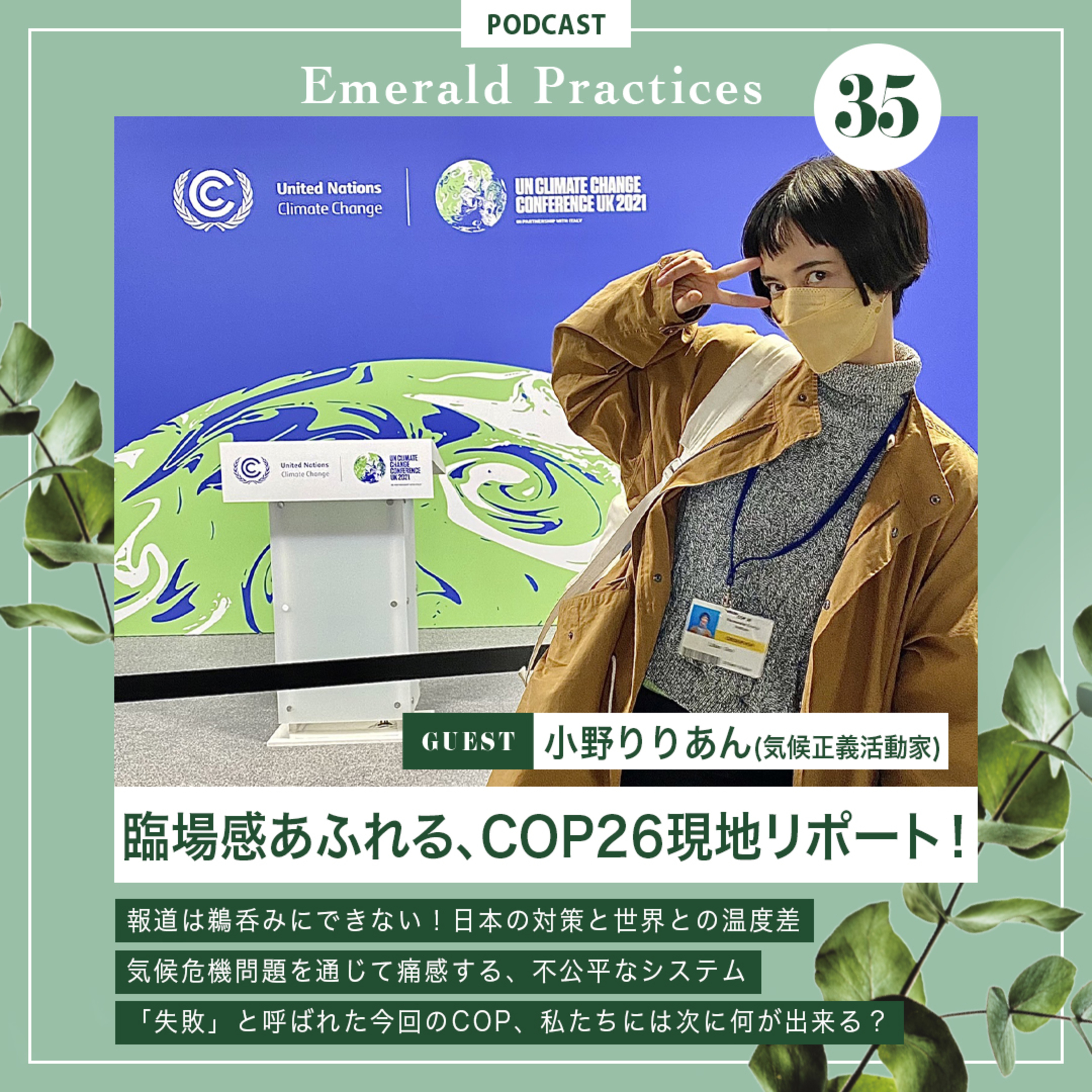 11月12日に、2週間の開催に幕を閉じた今年のCOP26。終始現地でアクティビティに参加していた当番組のホスト、小野りりあんが、ニュースからだけでは伝わらない、現地からの臨場感あふれるレポートをしてくれた!