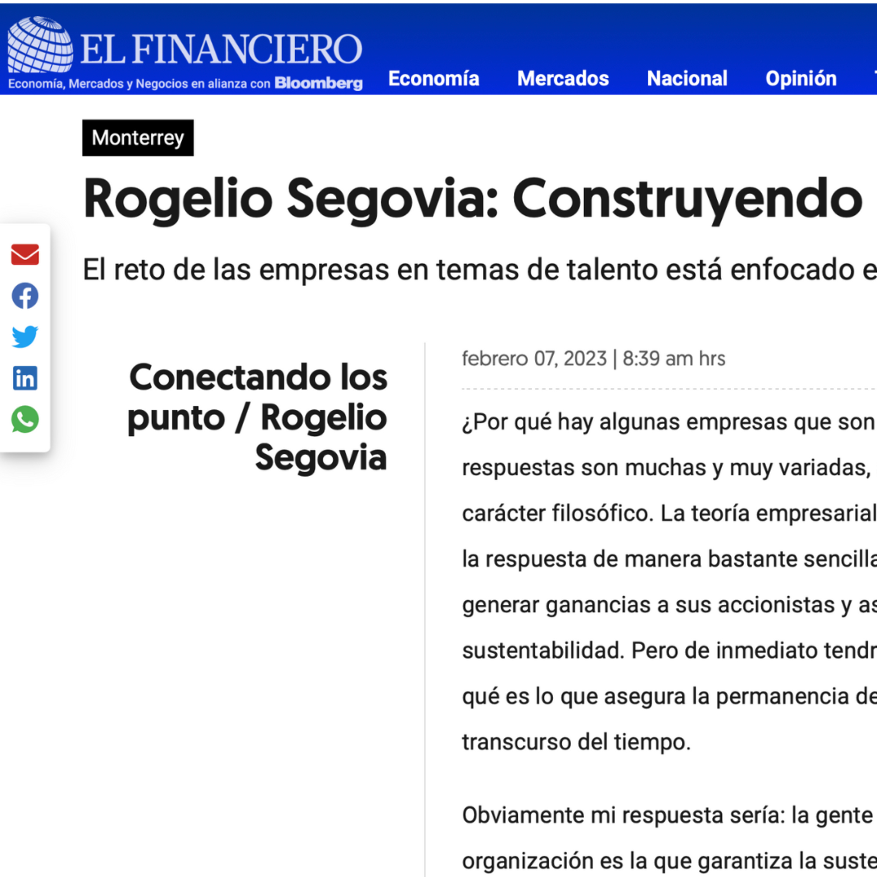 Te comparto mi columna semanal Conectando los Puntos para el periódico El Financiero ➡️ https://bit.ly/3YeYX1f