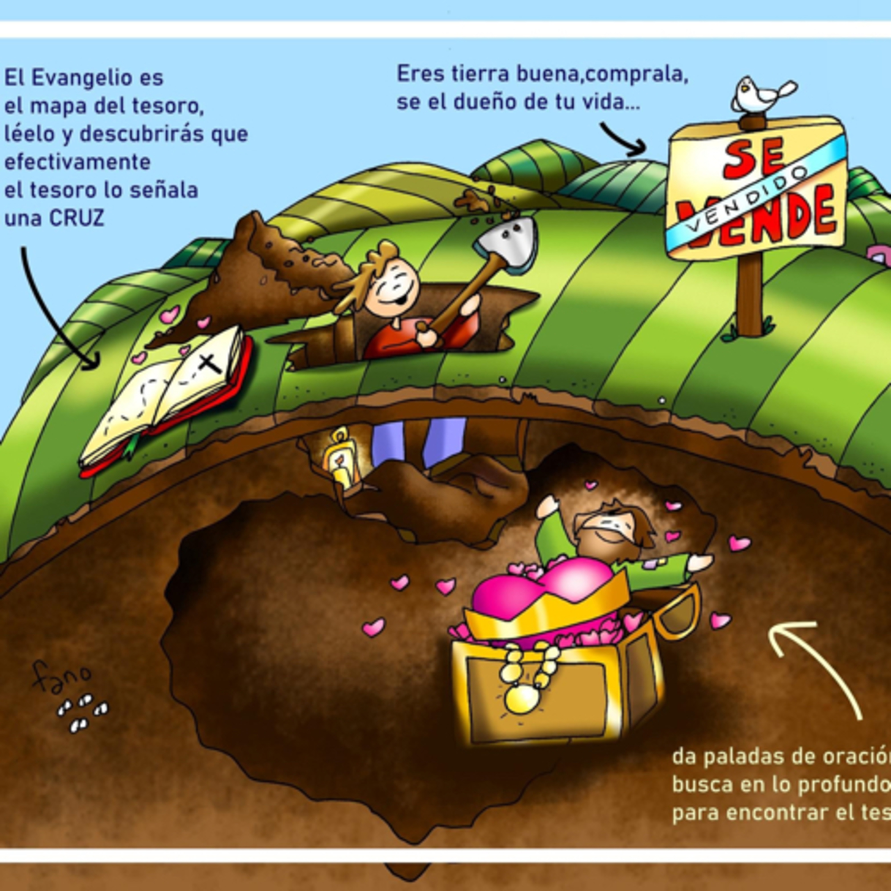 Ewangelia jest mapą, na której oznaczono miejsce ukrycia wyjątkowego skarbu. Czytaj ją, a odkryjesz, że skarb wskazany jest przez krzyż. Jesteś ziemią, w której ukryty jest ten skarb. Kup ją i wejdź w posiadanie swojego życia. Zacznij w niej głęboko kopać za pomocą modlitwy, a odnajdziesz ukryty skarb – Królestwo Boże i Jezusa. Czy Królestwo Boże jest dla mnie wyjątkowym skarbem i najwyższą wartością w życiu? Jak myślisz, czego nie jesteś w stanie dziś sprzedać, aby w pełni należeć do Chrystusa?