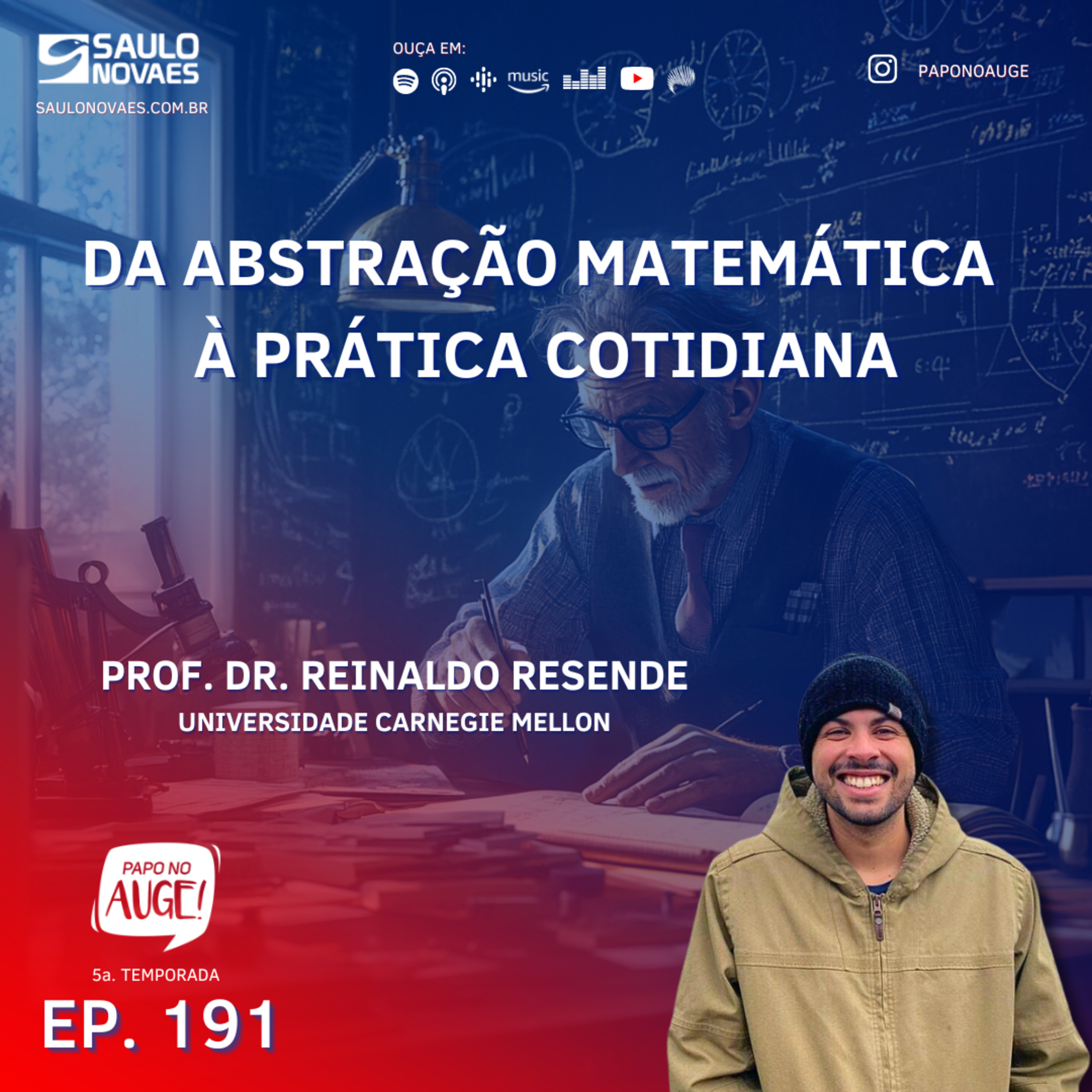 E para discutir a matemática, seus postulados e sua aplicação prática, convidamos a este Papo no Auge! o Professor Reinaldo Resende, doutor em matemática pelo Instituto de Matemática e Estatística da USP. Ele é autor da melhor tese de doutorado do Brasil em 2024 na área de matemática - Prêmio Professor Carlos Teobaldo Gutierrez Vidalon. Vamos falar sobre esta tese, sobre o Professor Reinaldo, sua história e sobre a matemática.