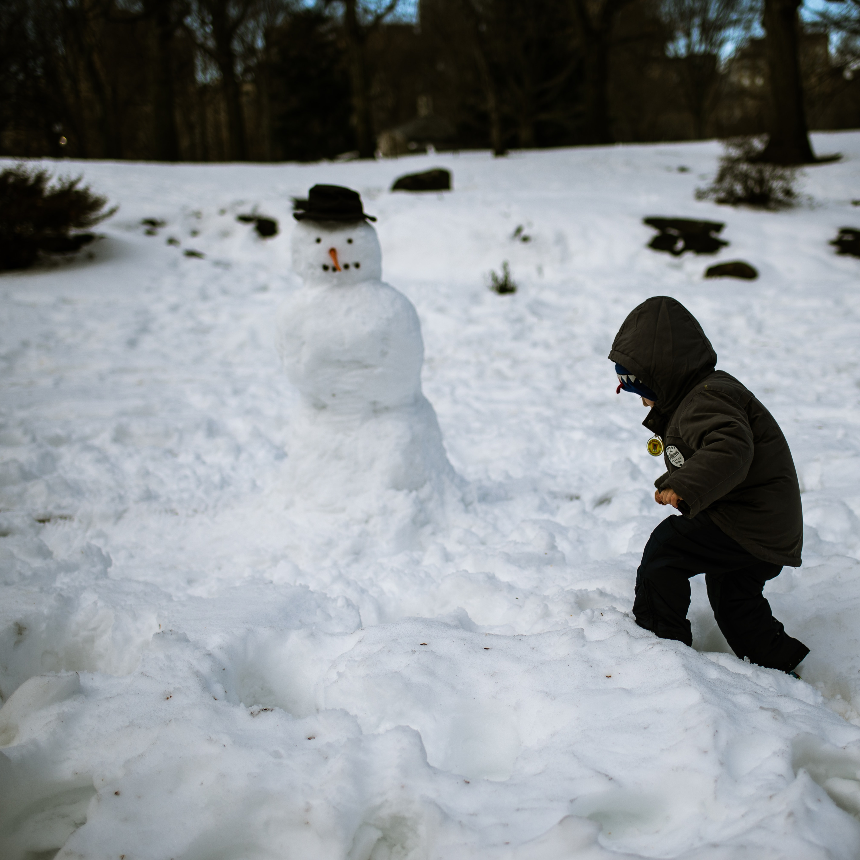 Pit baut einen Schneemann
