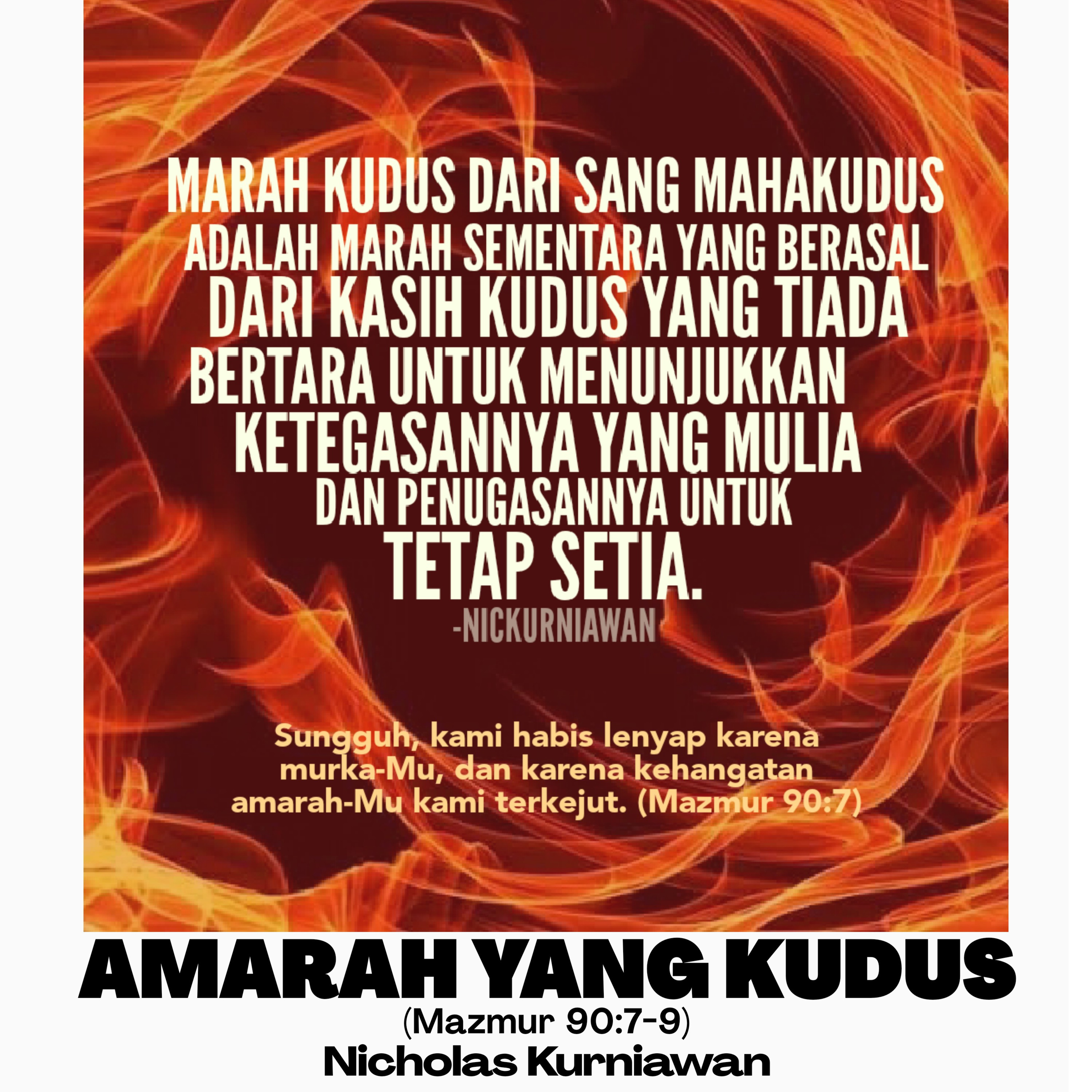 Sabda Tuhan menjelaskan tentang amarah kudus dari Sang MahaKudus adalah amarah yang sementara dan digerakkan oleh kasihNya yang tidak bertara dan amarahNya dinyatakan untuk menunjukkan ketegasanNya yang mulia untuk penugasanNya bagi orang percaya agar tetap setia kepadaNya.