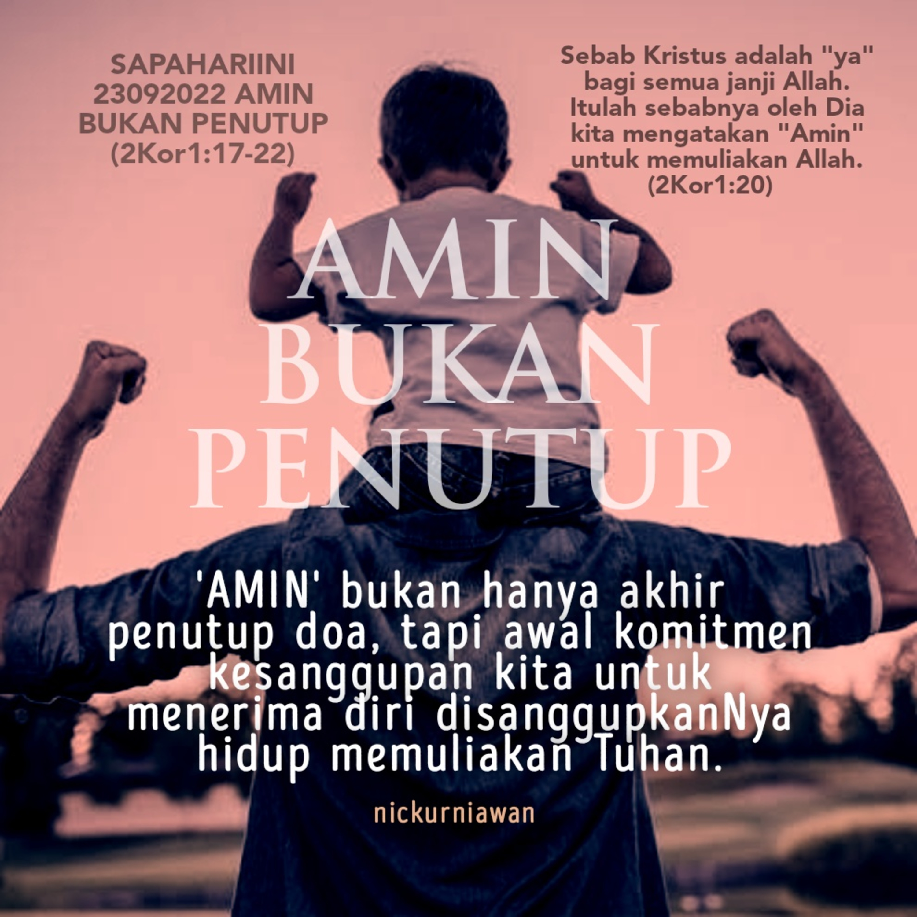Sabda Tuhan ajarkan bahwa kata 'AMIN' bukan hanya akhir penutup doa, tapi di dalamnya terkandung awal komitmen kesanggupan kita untuk menerima diri disanggupkanNya hidup memuliakan Tuhan.