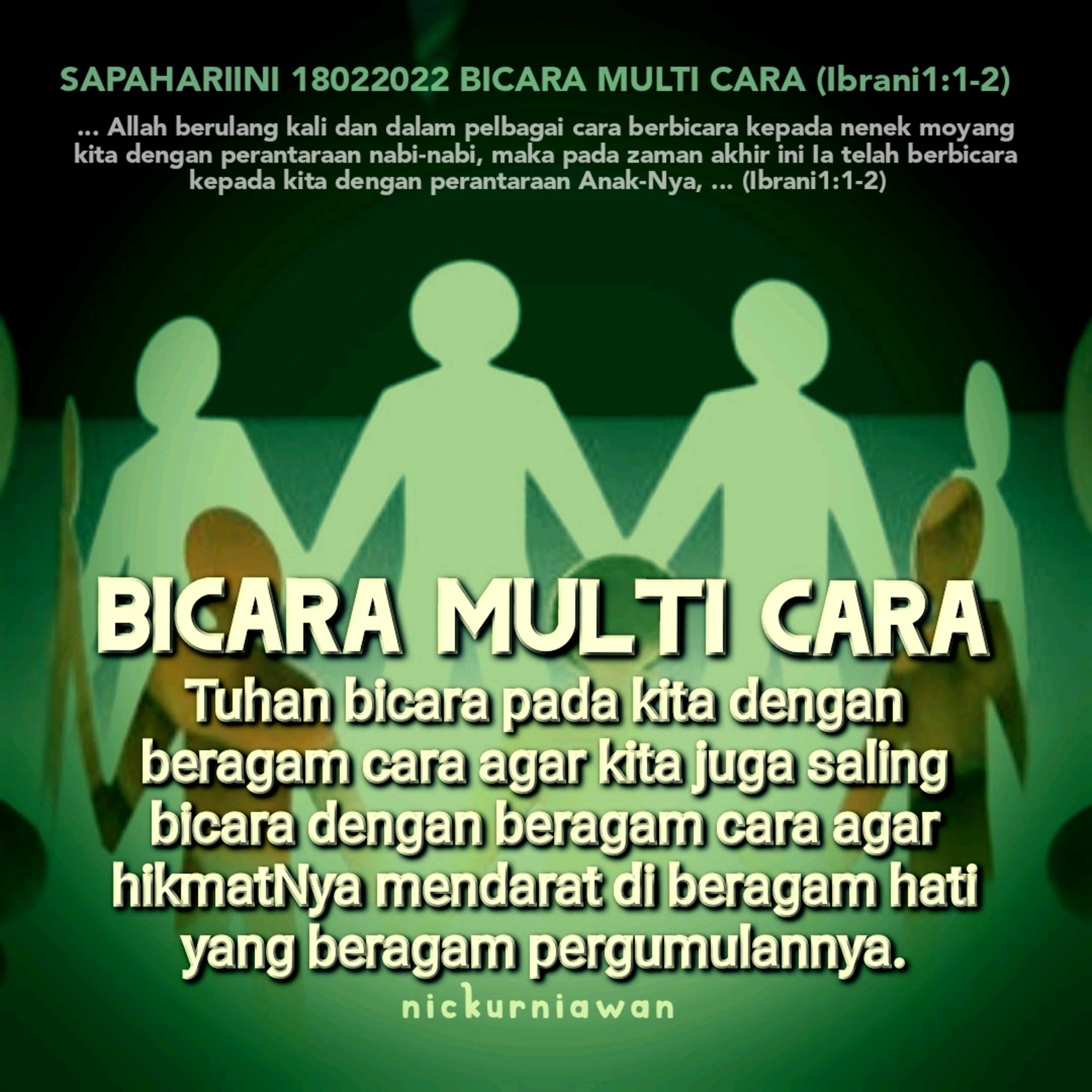 Sabda Tuhan hari ini ingin mengingatkan bahwa Tuhan bicara pada kita dengan beragam cara agar kita juga saling bicara dengan beragam cara agar hikmatNya mendarat di beragam hati yang beragam pergumulannya.