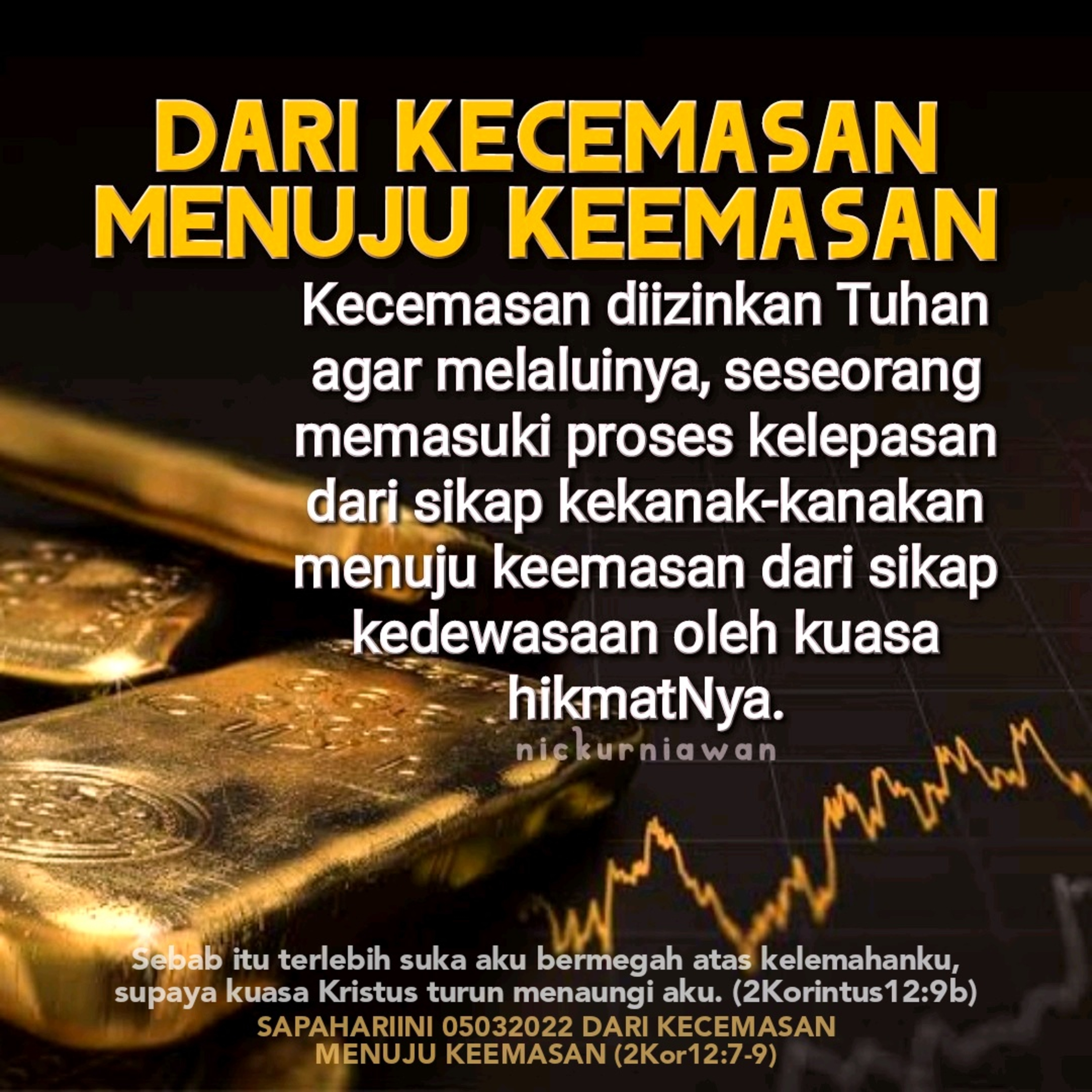 Sabda Tuhan tentang hikmat dari penglihatan Paulus akan kelemahan dirinya yang mencemaskan hidupnya, ingin mengajarkan bahwa kecemasan diizinkan Tuhan agar melaluinya, seseorang memasuki proses kelepasan dari sikap kekanak- kanakan menuju keemasan dari sikap kedewasaan oleh kuasa hikmatNya.