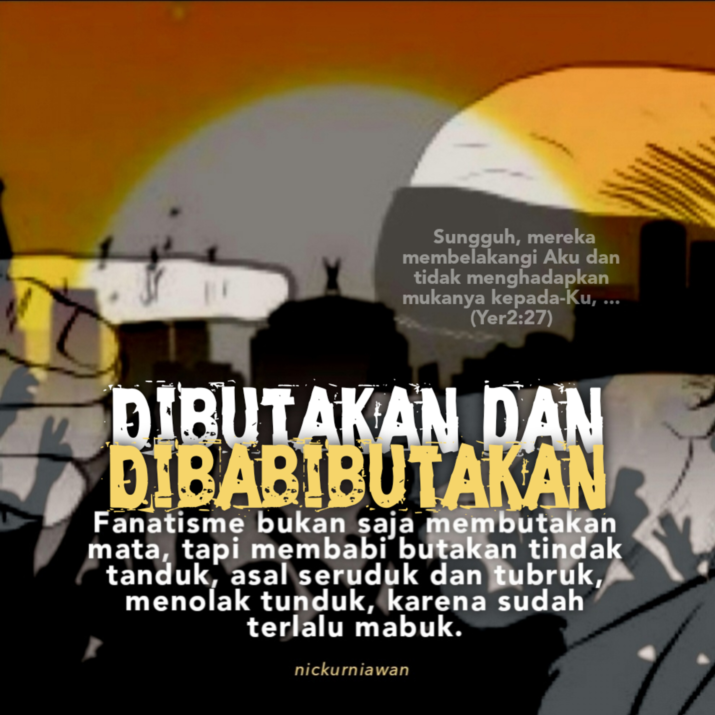Sabda Tuhan ingatkan tentang sikap fanatisme berlebihan yang bukan saja membutakan mata, tapi membabi butakan tindak tanduk, asal seruduk dan tubruk, menolak tunduk, karena sudah terlalu mabuk.