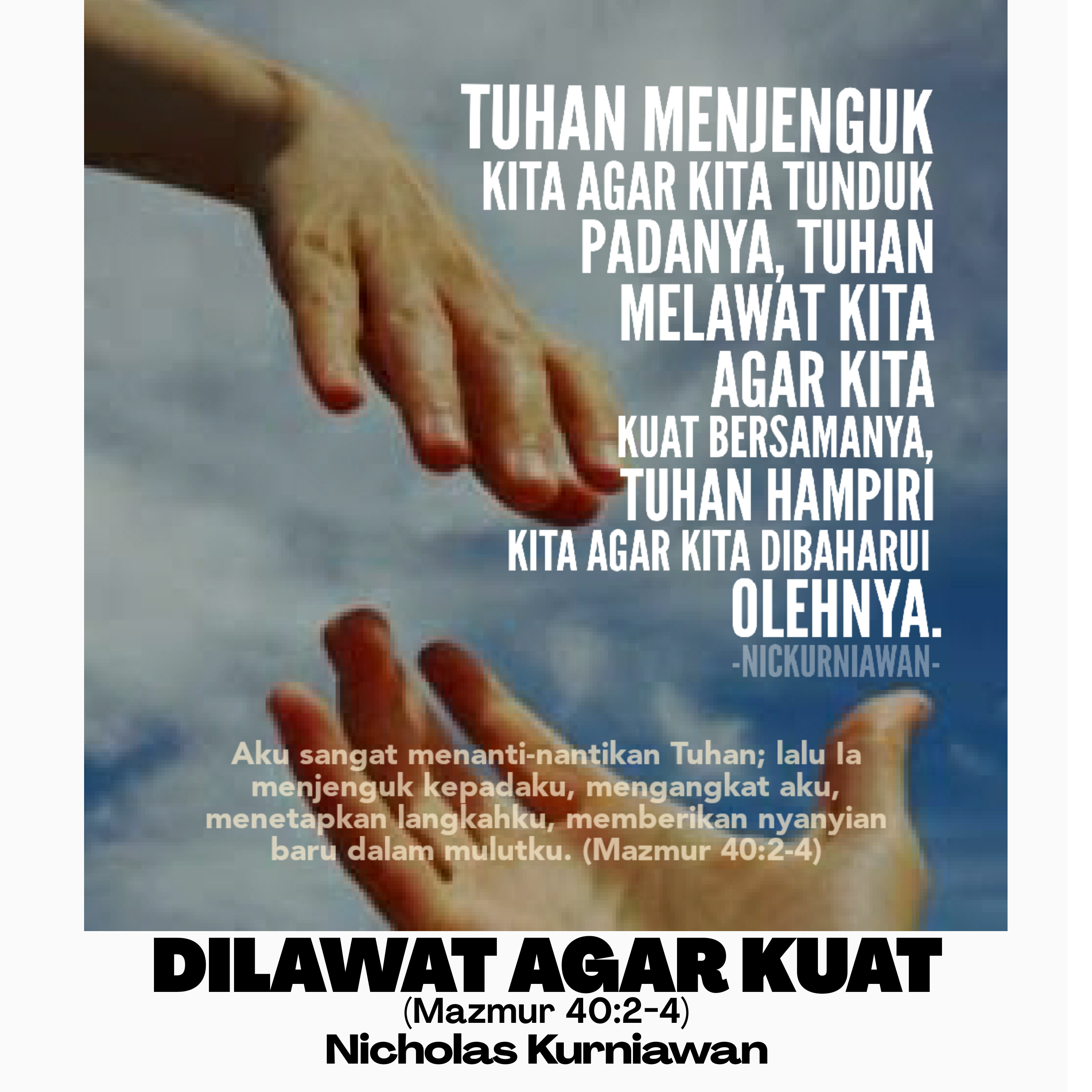 Sabda Tuhan mengunjungi melalui ungkapan hati dan pengalaman Daud di Mazmur 40, untuk meyakinkan kita bahwa Tuhan menjenguk orang yang sabar menantikanNya agar ia tunduk padaNya, Tuhan melawat agar ia kuat bersamaNya dan Tuhan menghampiri agar ia dibaharui olehNya, sehingga ia jadi kesaksian yang hidup dan membuat orang lain percaya kepadaNya.