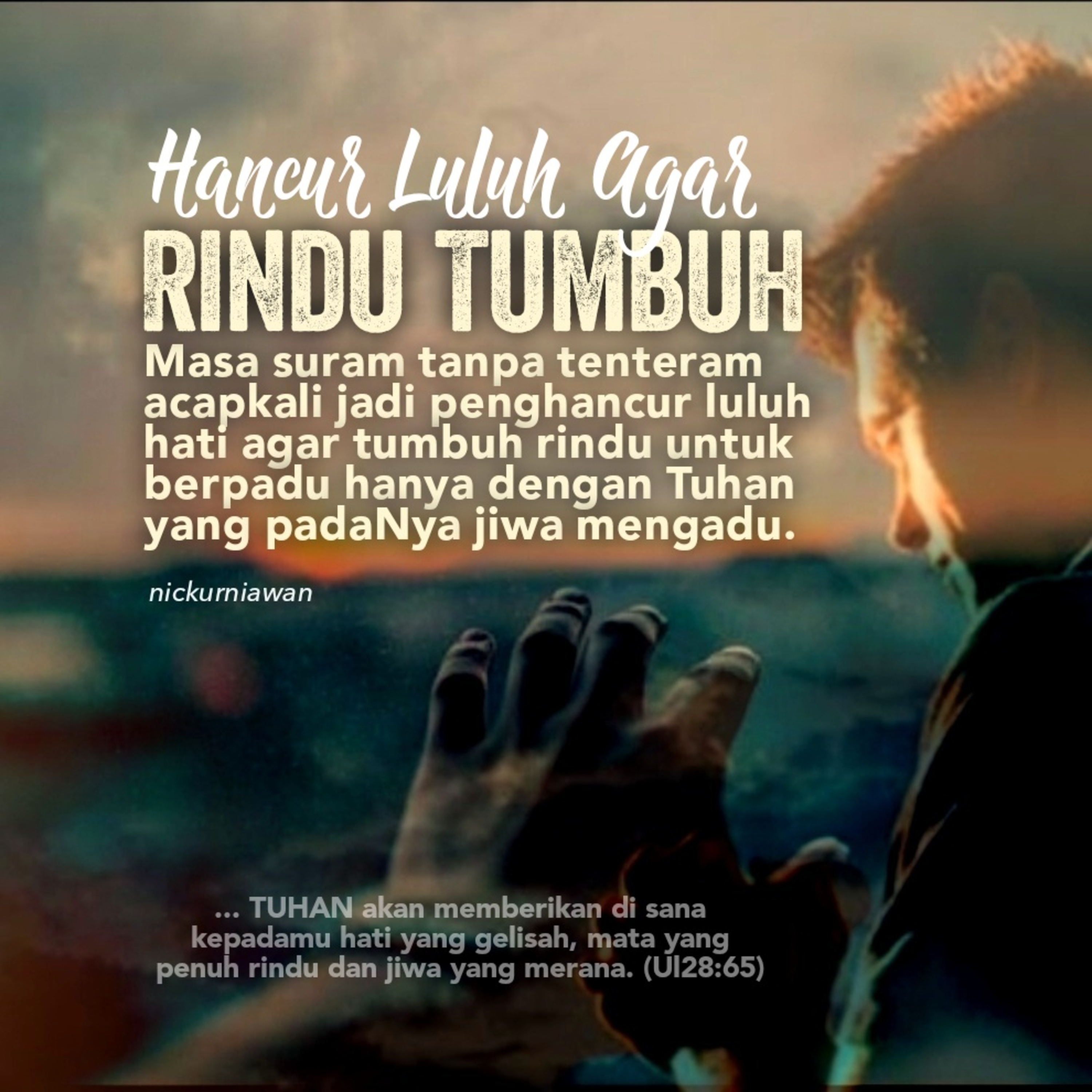 Sabda Tuhan menyapa dan mengingatkan bahwa masa suram tanpa tenteram acapkali jadi penghancur luluh hati agar tumbuh rindu untuk berpadu hanya dengan Tuhan yang padaNya jiwa mengadu.