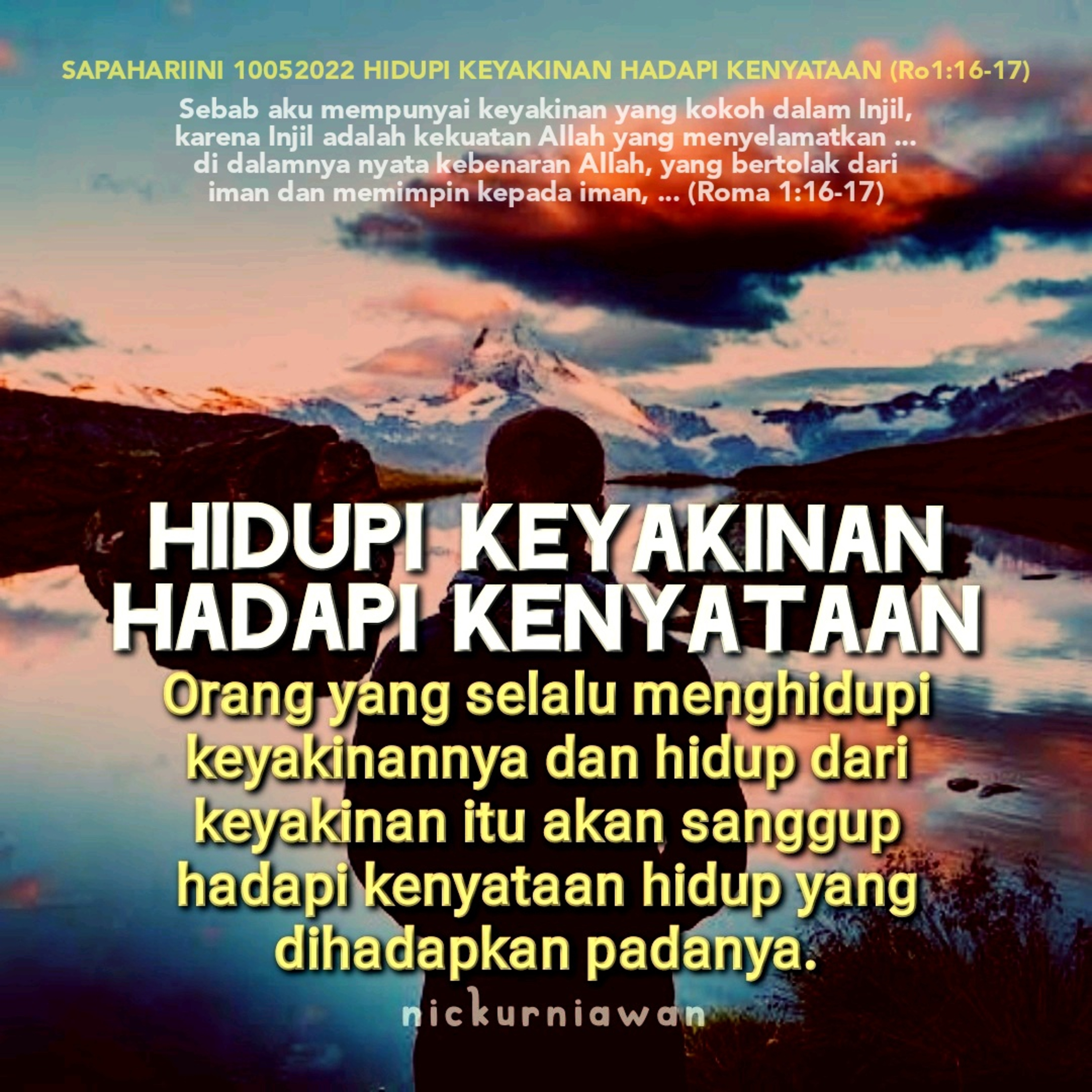 Sabda Tuhan mengantarkan pada perubahan perspektif dalam hadapi kenyataan hidup, bahwa orang yang selalu menghidupi keyakinannya dan hidup dari keyakinan itu akan sanggup hadapi kenyataan hidup yang dihadapkan padanya.