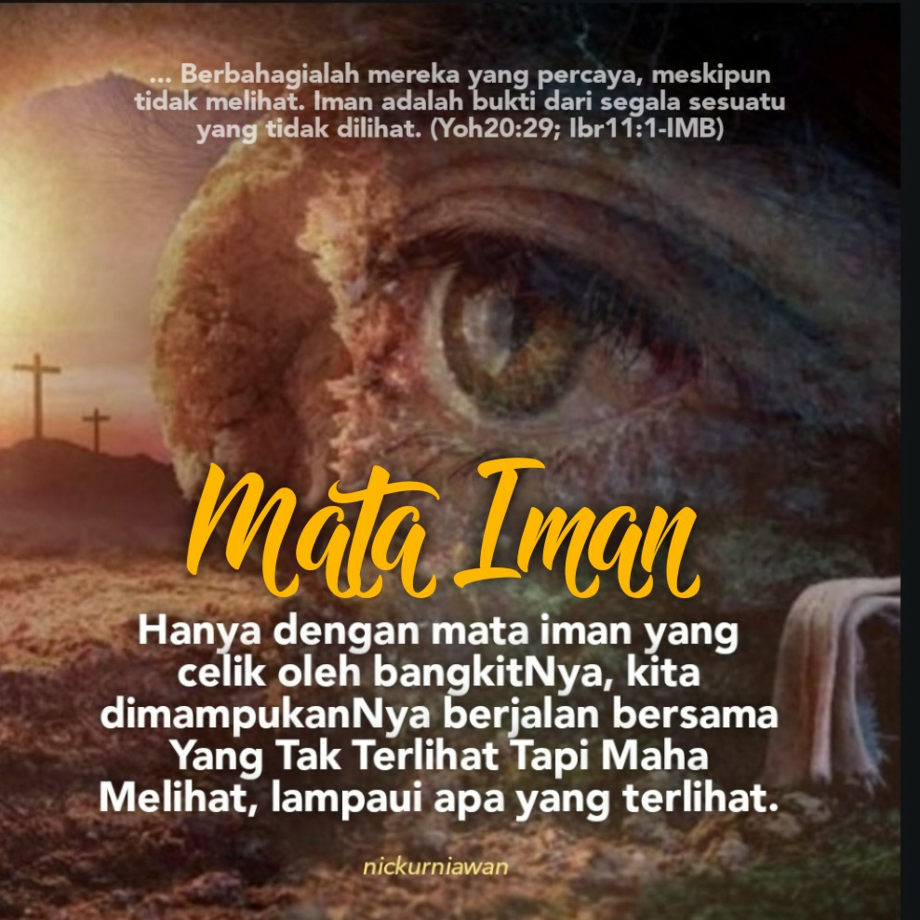 Sabda Tuhan ajarkan bahwa hanya dengan mata iman yang celik oleh bangkitNya, kita dimampukanNya berjalan bersama Yang Tak Terlihat Tapi Maha Melihat, lampaui apa yang terlihat.