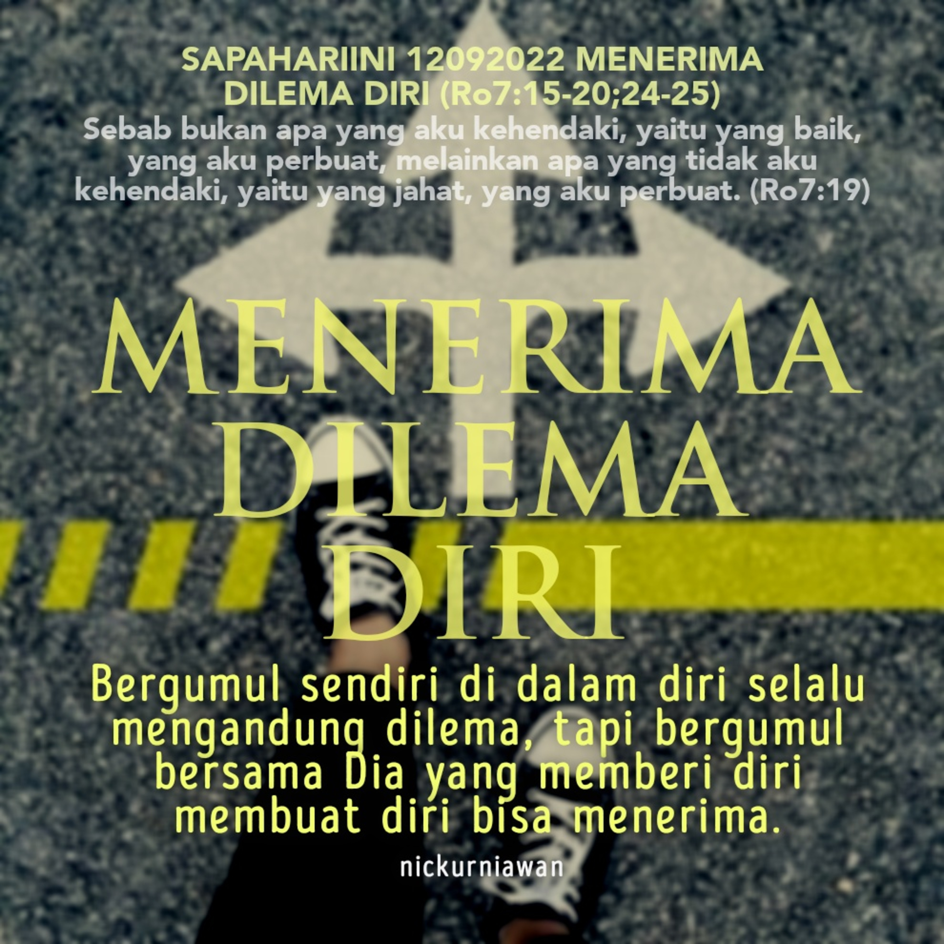 Sabda Tuhan mengingatkan kita bahwa bergumul sendiri di dalam diri selalu mengandung dilema, tapi bergumul bersama Dia yang memberi diri membuat diri bisa menerima.