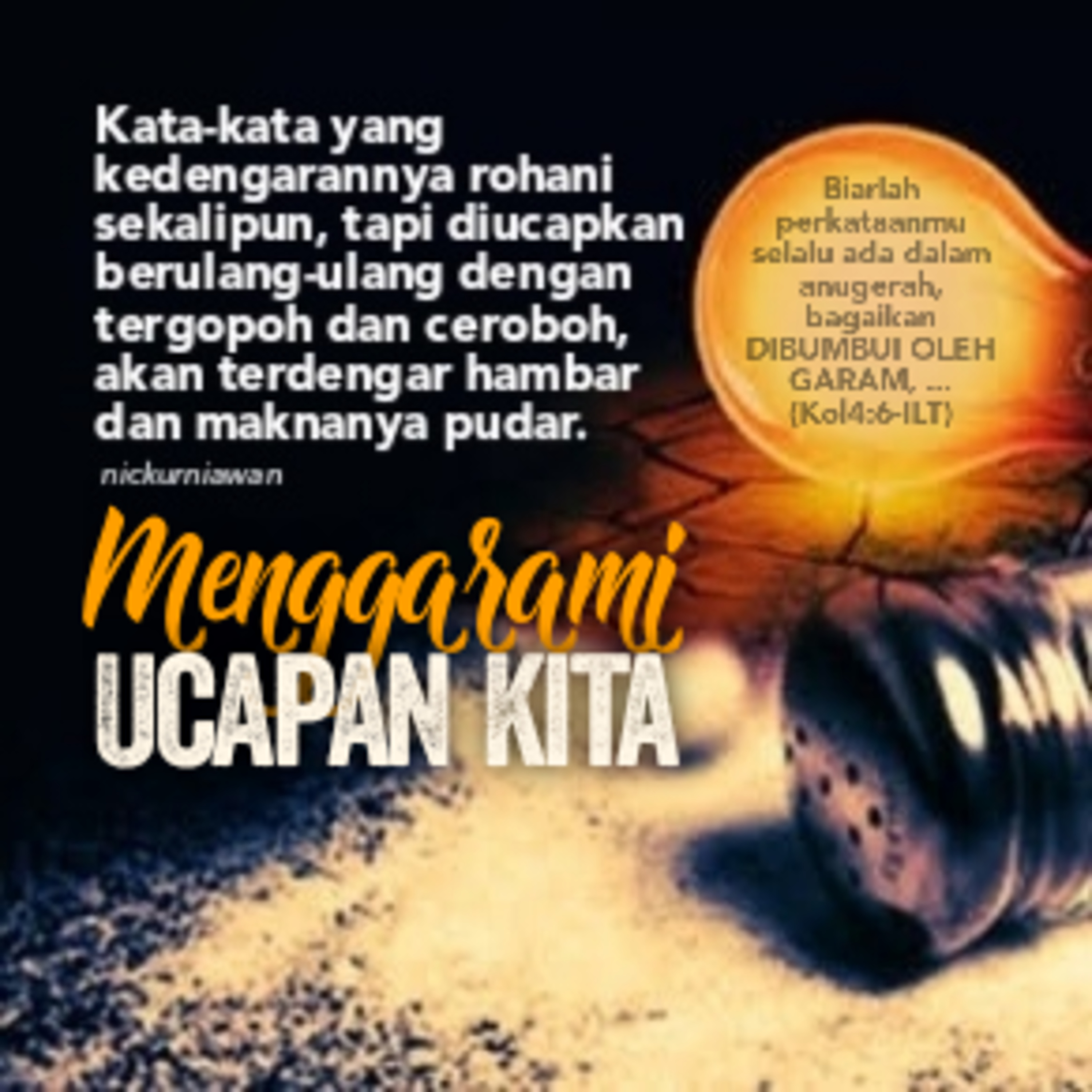 Sabda Tuhan ajarkan kita agar kata-kata kita tidak hambar, karena kata-kata yang kedengarannya rohani sekalipun, tapi diucapkan berulang-ulang dengan tergopoh dan ceroboh, akan terdengar hambar dan maknanya pudar.