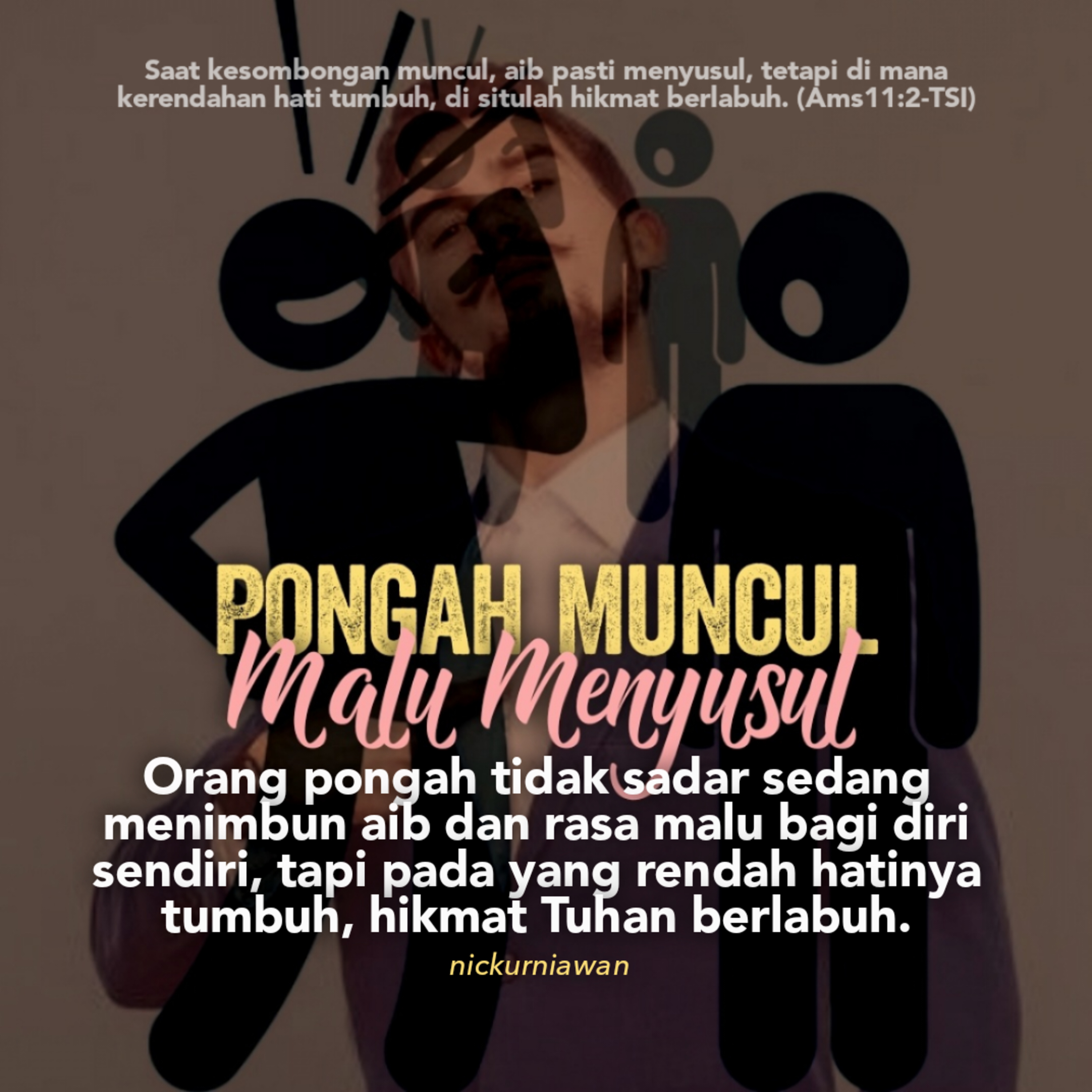 Sabda Tuhan ingatkan bahwa orang pongah tidak sadar sedang menimbun aib dan rasa malu bagi diri sendiri, tapi pada yang rendah hatinya tumbuh, hikmat Tuhan berlabuh.