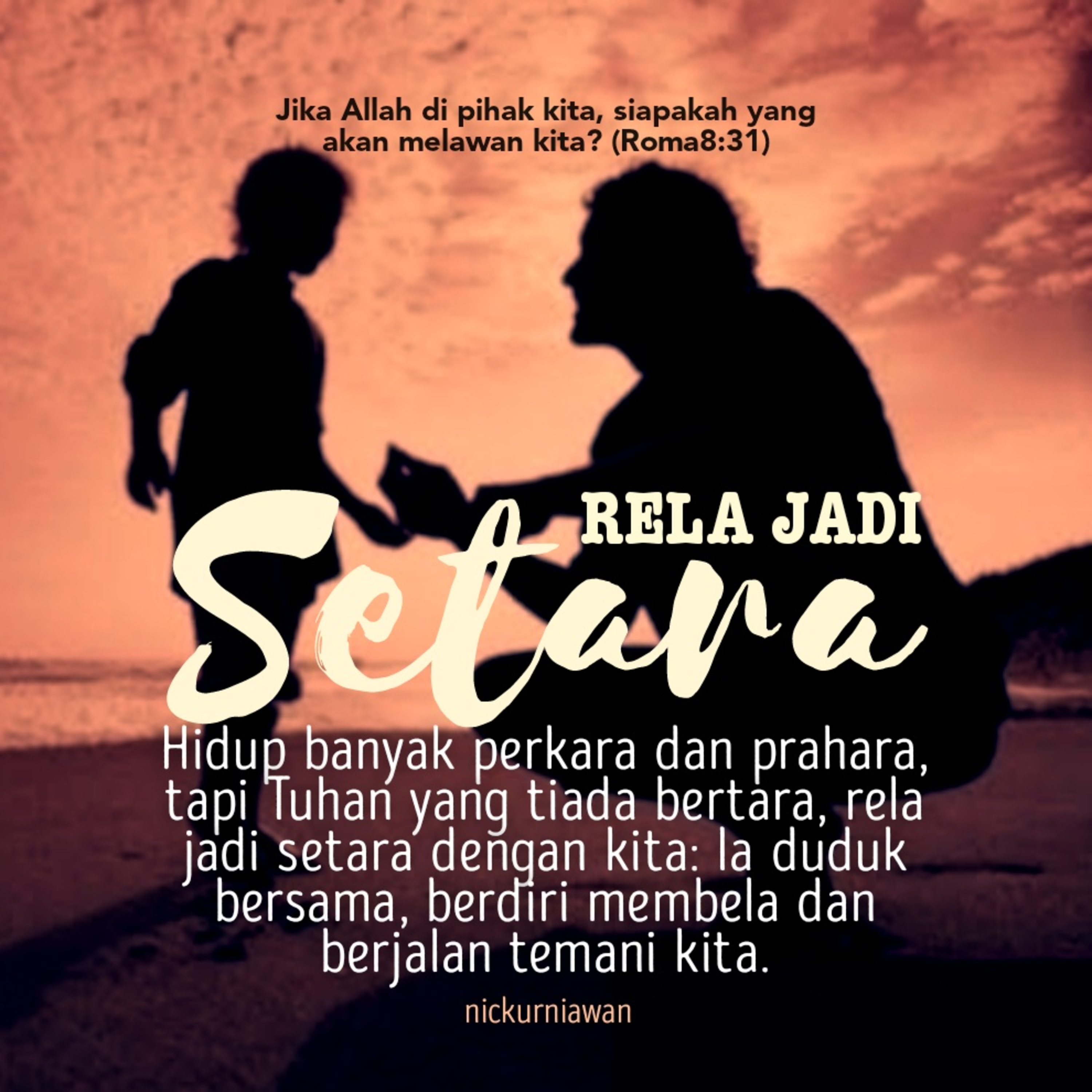 Sabda Tuhan ajarkan kita bahwa memang Hidup banyak perkara dan prahara, tapi Tuhan yang tiada bertara rela jadi setara dengan kita: Ia duduk bersama, berdiri membela dan berjalan temani kita.