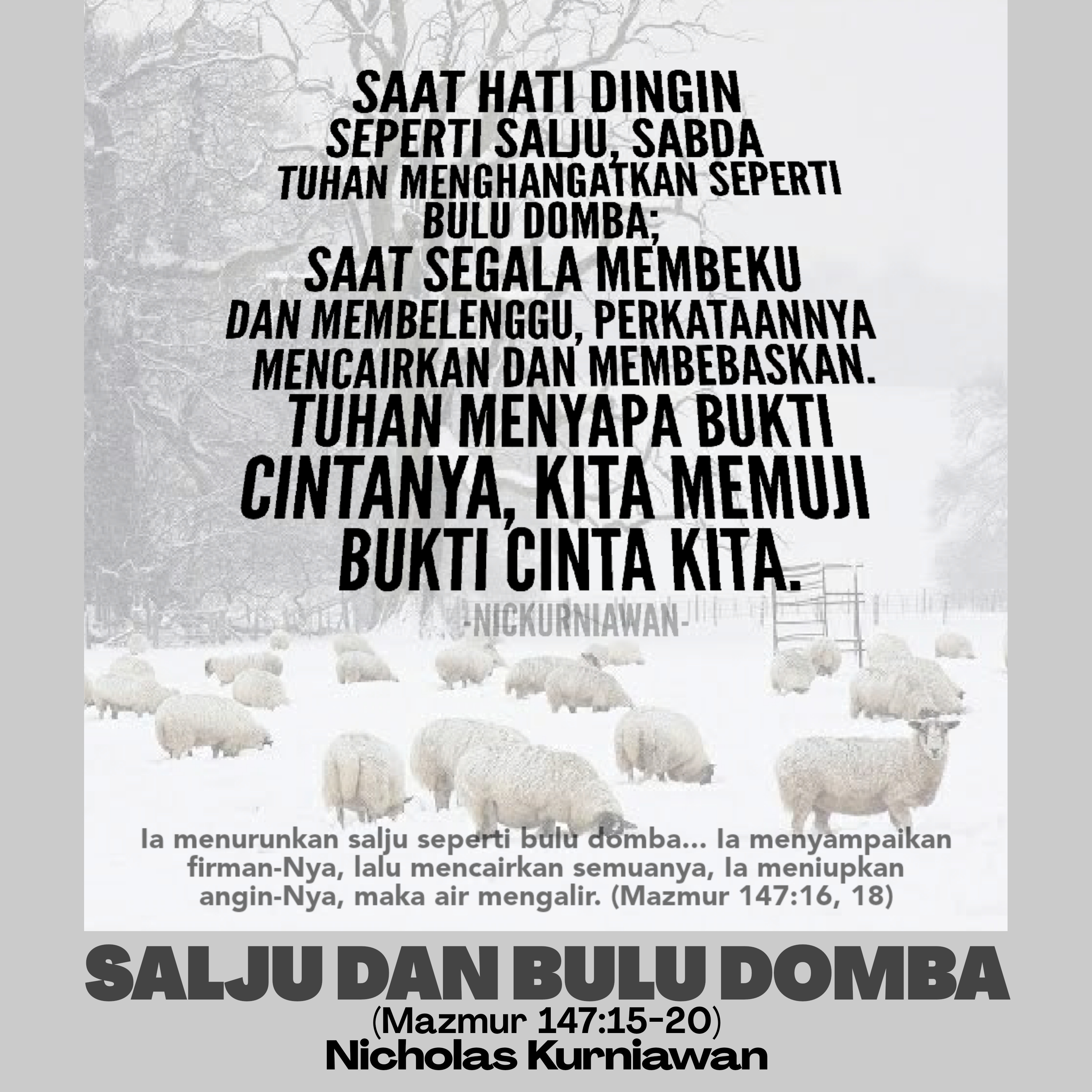 Sabda Tuhan menyapa untuk menjelaskan kaitan erat antara pujian kepada Tuhan dan Sabda Tuhan yang berkuasa, yaitu saat hati dingin seperti salju, sabda Tuhan menghangatkan seperti bulu domba; Saat segala membeku dan membelenggu, perkataanNya mencairkan dan membebaskan.