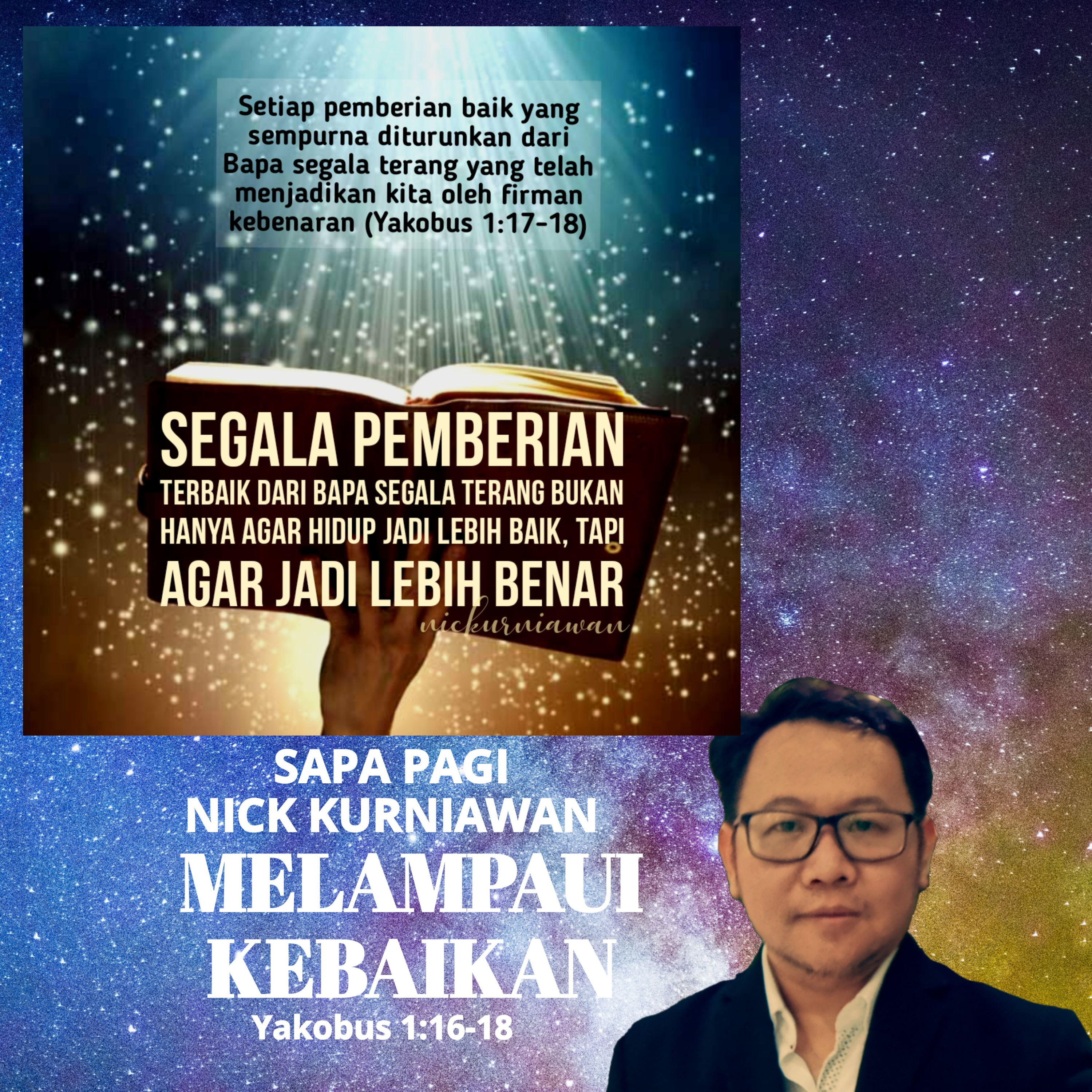 SabdaNya menyapa kita untuk mengingatkan bahwa melampaui kebaikan yang kita idamkan dalam hidup, ada kebenaran yang jauh lebih penting daripada sekedar kebaikan dan kebaikan yang memimpin pada kebenaran hanyalah datang dari Bapa Segala Terang yang melahirkan orang percaya dari firman kebenaranNya.