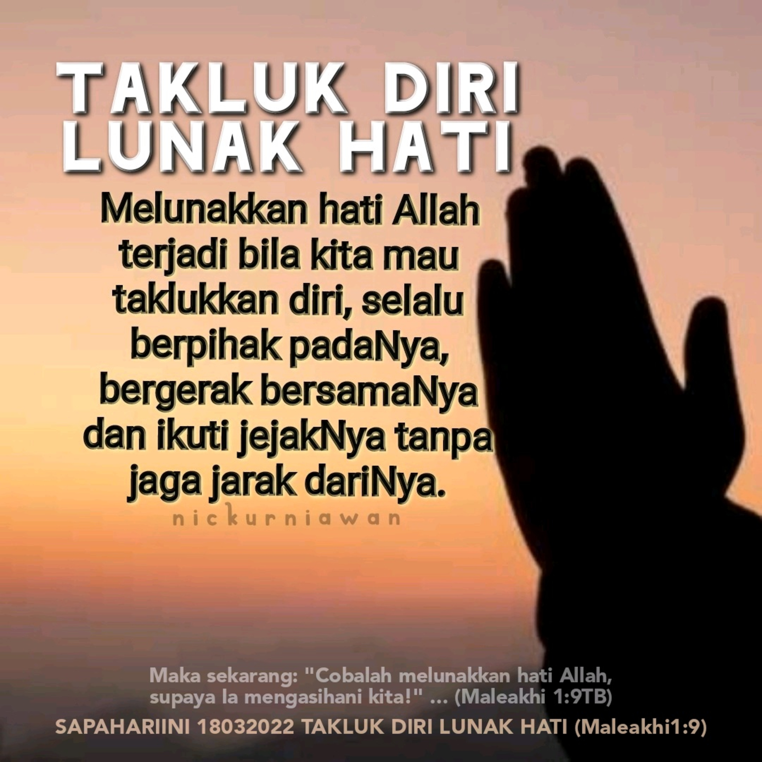 Sabda Tuhan mengajarkan bahwa untuk melunakkan hati Allah kita harus mau taklukkan diri, selalu berpihak padaNya, bergerak bersamaNya dan ikuti jejakNya tanpa jaga jarak dariNya.