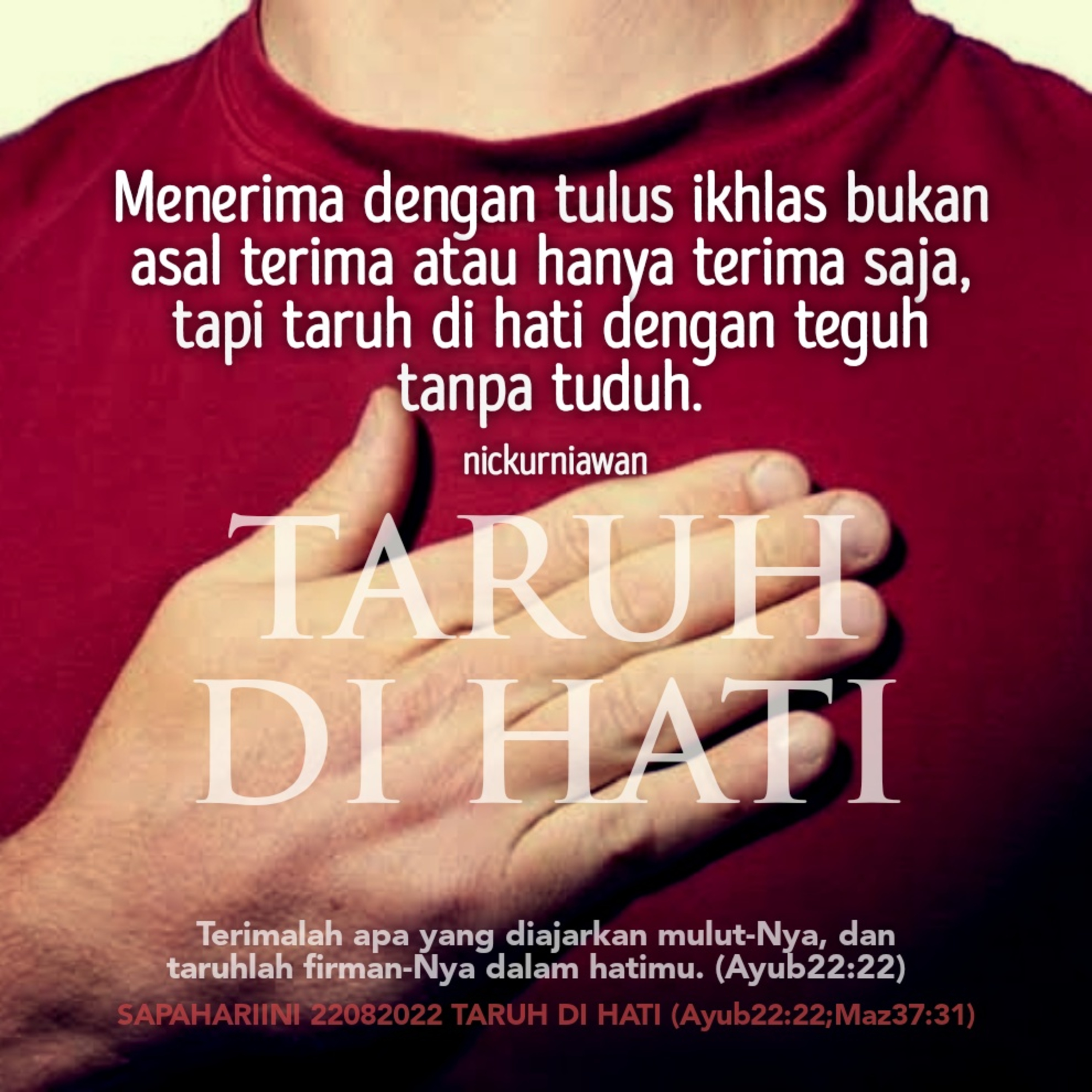 Sabda Tuhan mengajarkan tentang makna menerima dengan tulus ikhlas yang bukan asal terima atau hanya terima saja, tapi taruh di hati dengan teguh tanpa tuduh.