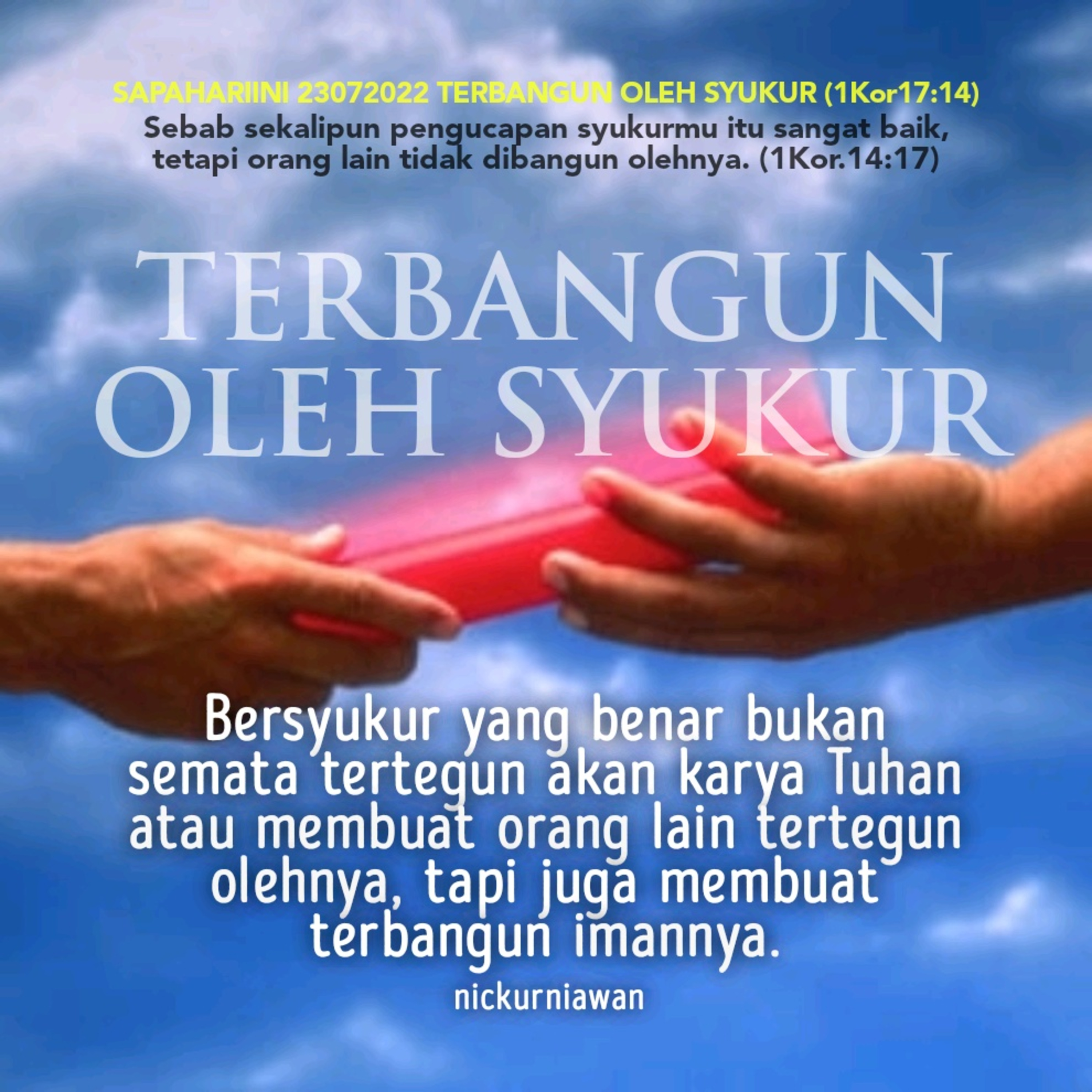 Sabda Tuhan mengajarkan bahwa bersyukur yang benar bukan semata tertegun akan karya Tuhan atau membuat orang lain tertegun oleh ucapan syukur itu, tapi seharusnya membuat orang lain terbangun imannya.