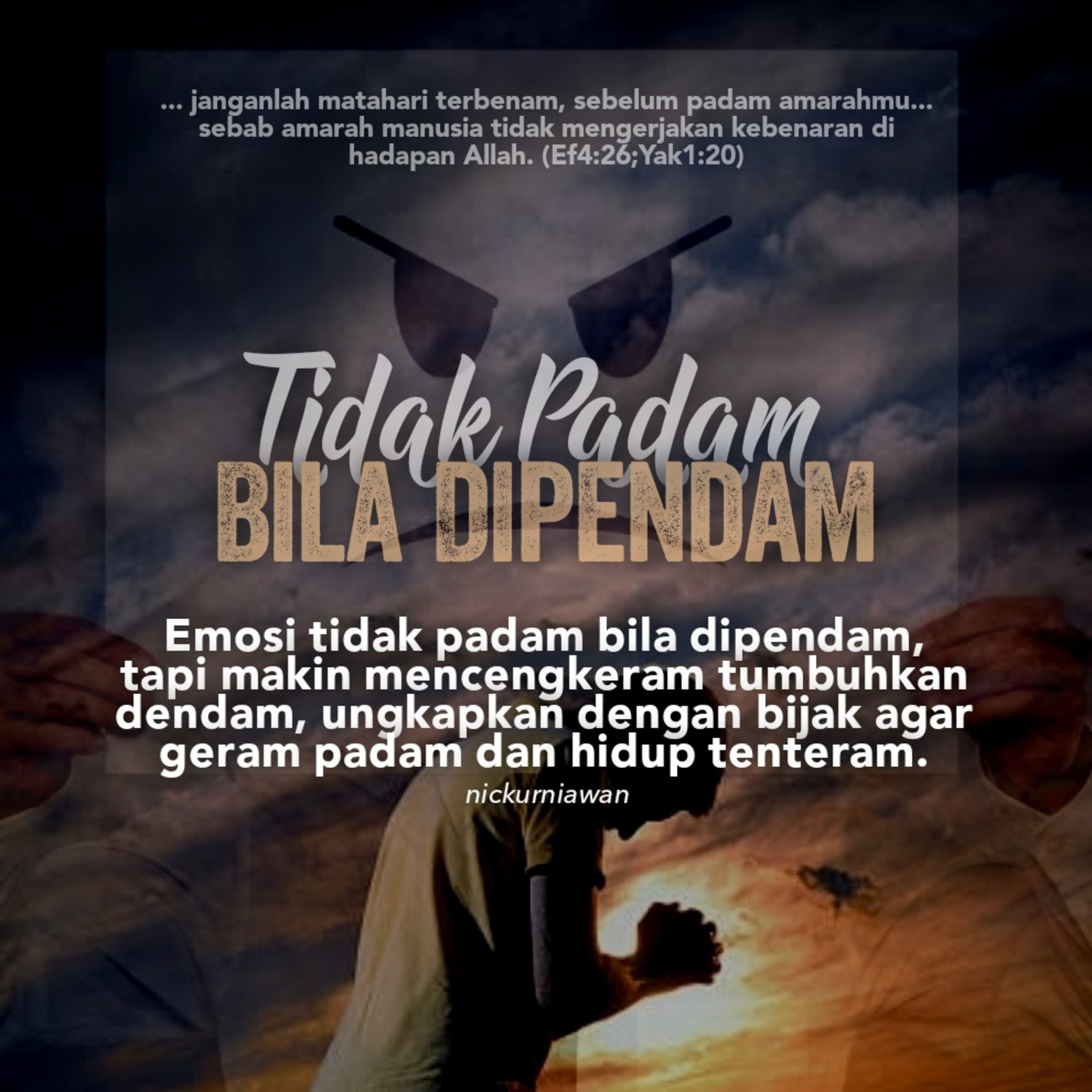 Sabda Tuhan ingatkan bahwa emosi tidak padam bila dipendam, tapi makin mencengkeram tumbuhkan dendam, ungkapkan dengan bijak dari Tuhan agar geram padam dan hidup tenteram.