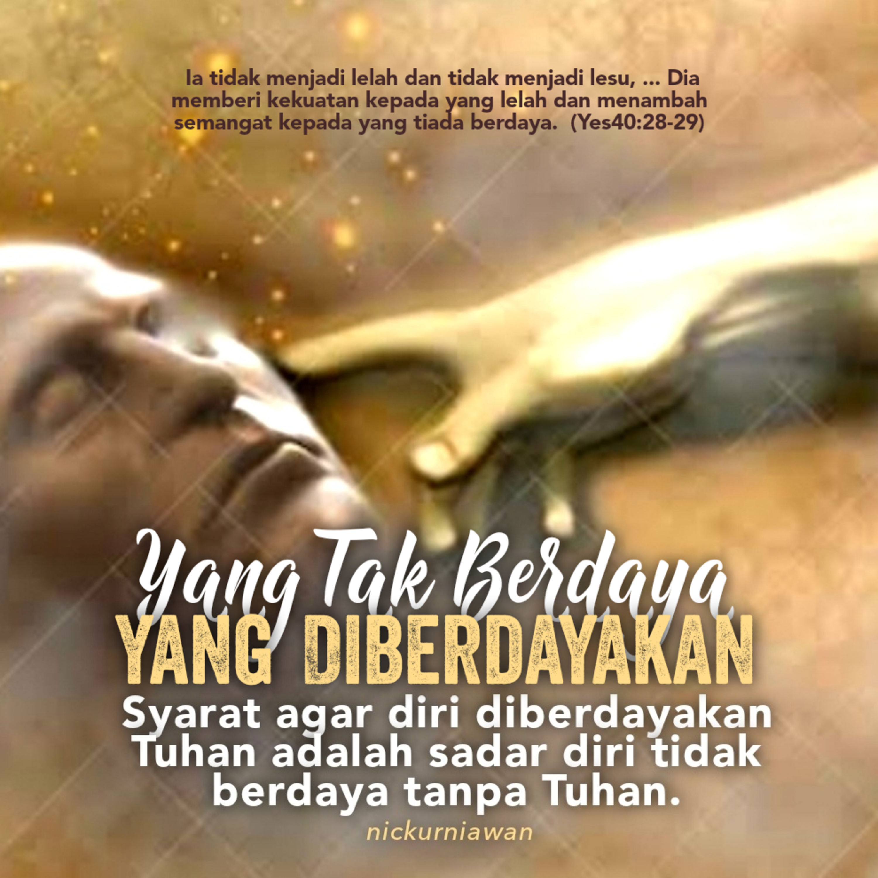 Sabda Tuhan hari ini ingatkan kita bahwa syarat agar diri diberdayakan Tuhan secara penuh adalah sadar diri sama sekali tidak berdaya tanpa Tuhan.