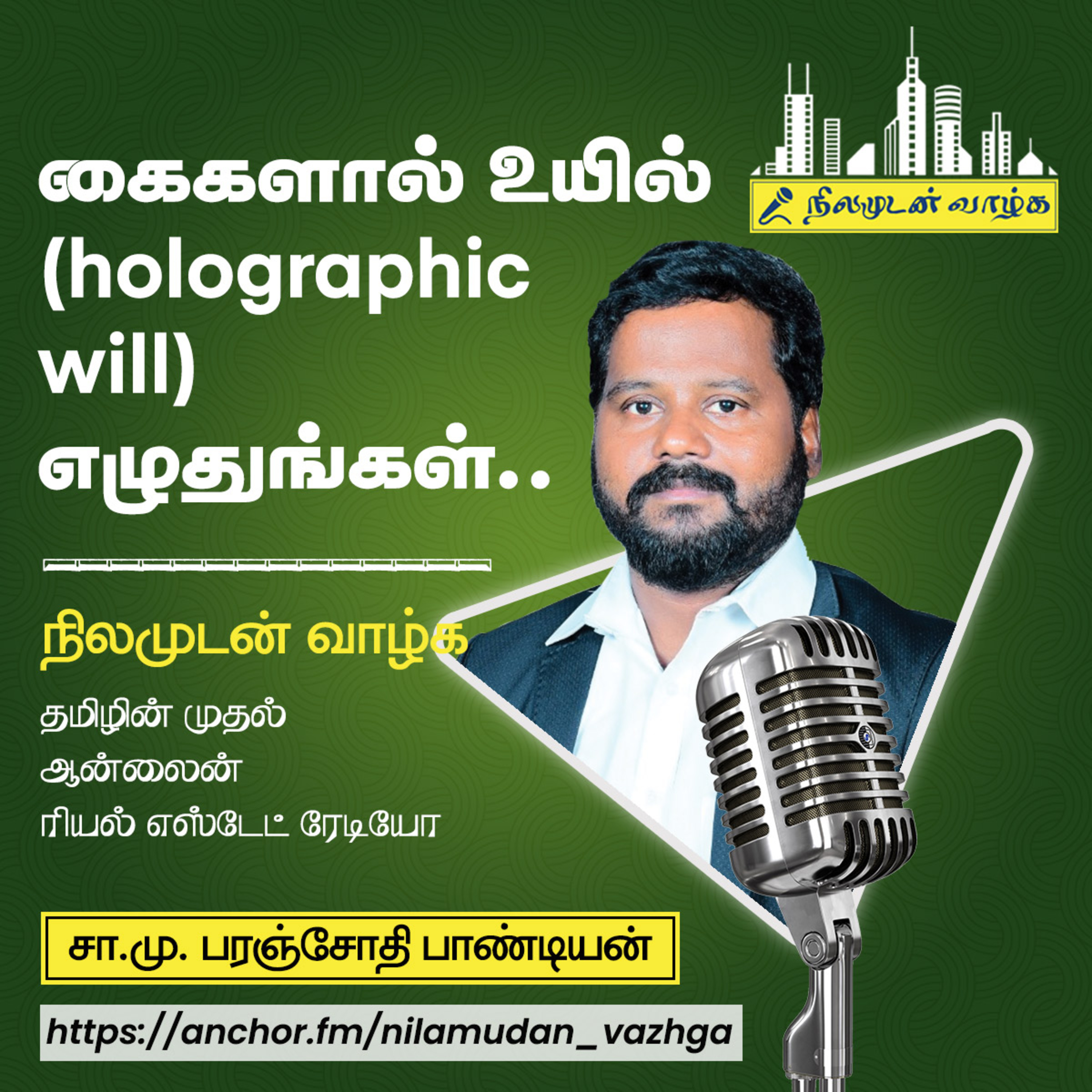 Listen to my latest podcast on anchor... நிலமுடன் வாழ்க!!! Today's topic:கைகளால் உயில் (holographic will)எழுதுங்கள்-சா.மு.பரஞ்சோதி பாண்டியன்-நிலநிர்வாக வரலாறு !!!!. நிலமுடன் வாழ்க!!! தமிழின் முதல் ரியல் எஸ்டேட் ஆன்லைன் ரேடியோ!!!எடுக்கப்பட்ட புத்தகம்: நிலம் உங்கள் எதிர்காலம் ஒரு ரியல் எஸ்டேட் ஏஜெண்டின் குறிப்புகள் ஆசிரியர்: சா.மு.பரஞ்சோதி பாண்டியன் .உருவாக்கம்: சா.மு.பரஞ்சோதி பாண்டியன் (எழுத்தாளர், ரியல் எஸ்டேட் பயிற்சியாளர்,தொழில்முனைவர்) Call:9841665837 Nilamudan Vaazhga!!! The First online Real Estate podcast in Tamil Nadu. #Lawyer #Attorney #LawFirm #LawerNearMe #LegalAdvice #LegalConsultation #Pondichery #Cuddlaore #Vizhuppuram #ECR #Marakkanam #Madurantakam #realtors #plot4sale #home4sale #Commercial #realestate #builders #promoters #investment #residential #Podcast #radio #online #business #passive #success #entrepreneurs #twins #universe #Athista #Paranjothi #lafortune #Pandian #lakshmi #Angel #mermaid #alphaman #leader https://paranjothipandian.in