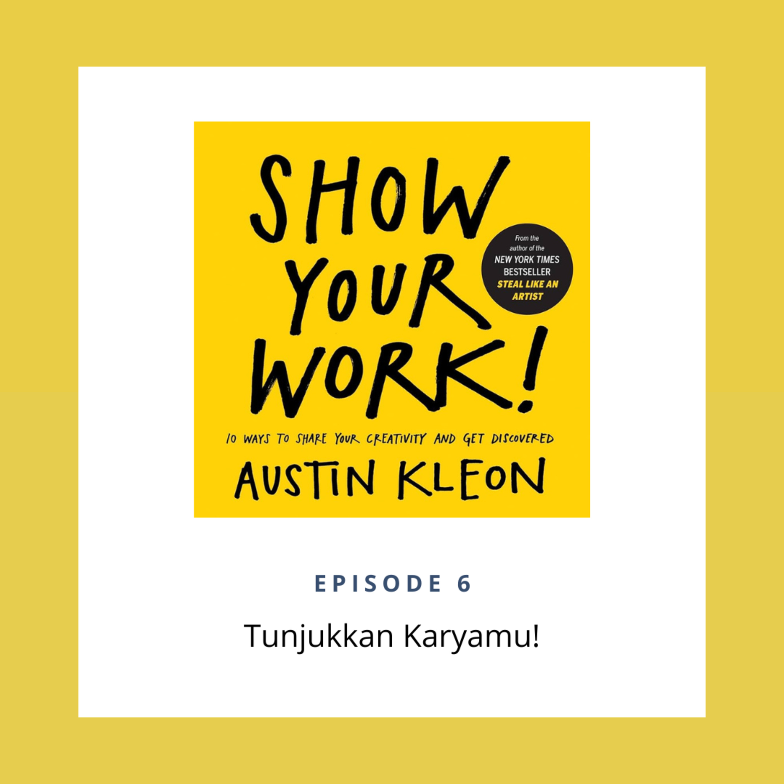Dalam Show Your Work!, Austin Kleon berusaha mendorong orang-orang untuk menunjukkan karyanya kepada khalayak. Mari buktikan eksistensimu dengan membagikan karya kamu di internet!