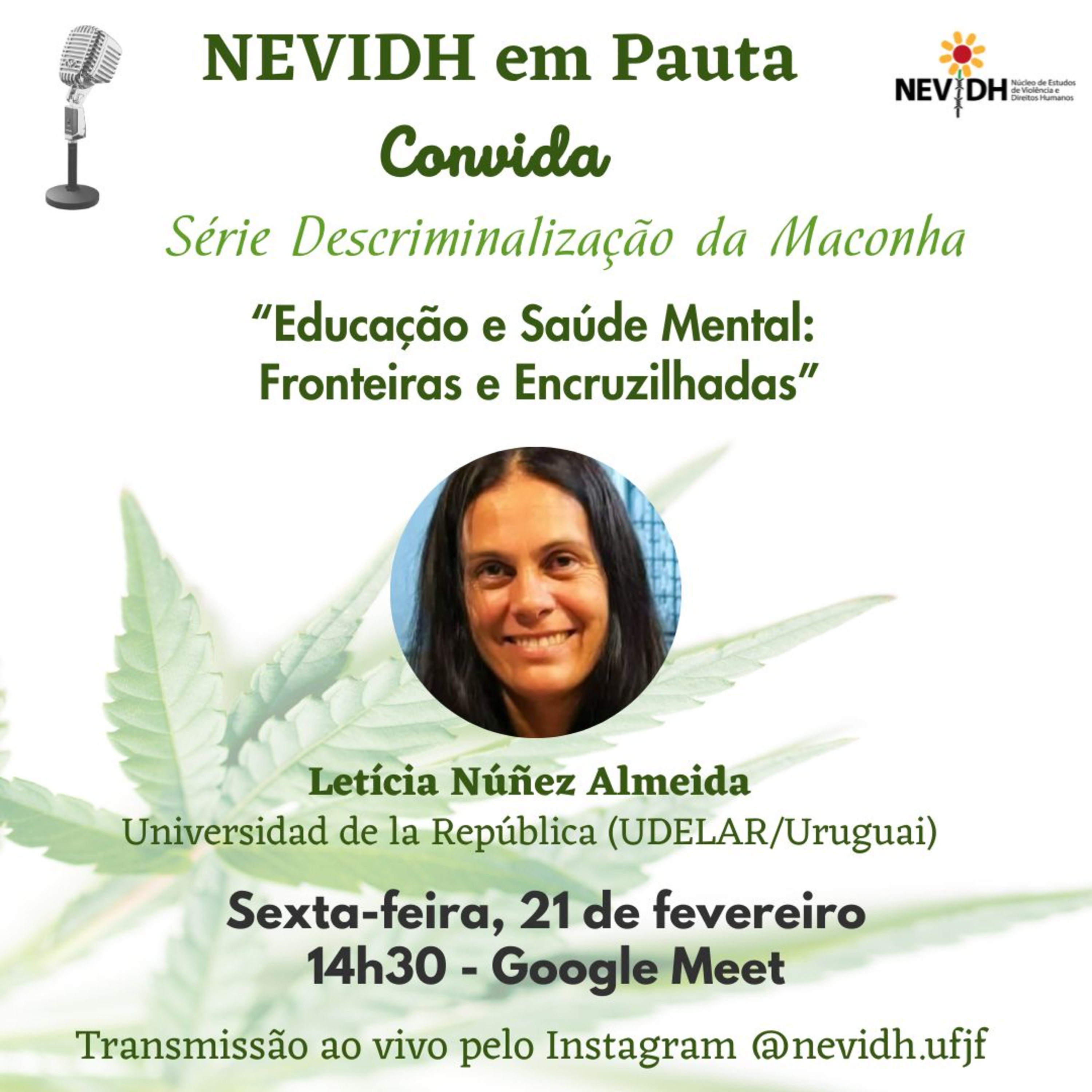 No quarto episódio da série a convidada é a professora da Universidad de la República, no Uruguai, Letícia Núñez Almeida. No papo com o coordenador do Nevidh, Paulo Fraga, e com o pesquisador Ricardo Bedendo, ela destacou o tema “Educação e saúde mental: fronteiras e encruzilhadas”.